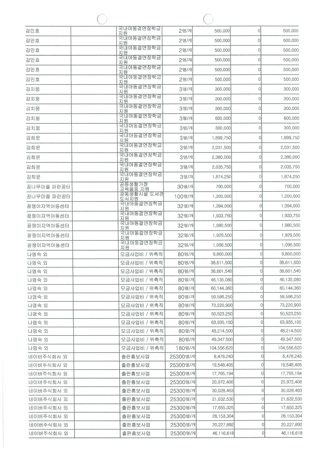 2023년 공개 보고서 기부금품 수입 지출 명세서