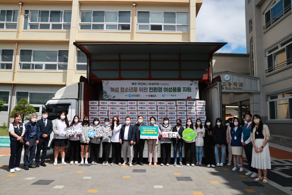 지난 6월 16일 세계교육문화원은, 유한킴벌리의 친자연 여성용품 브랜드 ‘라네이처’와 배우박진희의 ‘세계 월경의 날’을 맞아 500여 명이 6개월간 사용할 수 있는 ‘라네이처’ 생리대를 기부받아 인제군 농어촌 학교 20곳의 여학생 500명에게 직접 전달하였다.