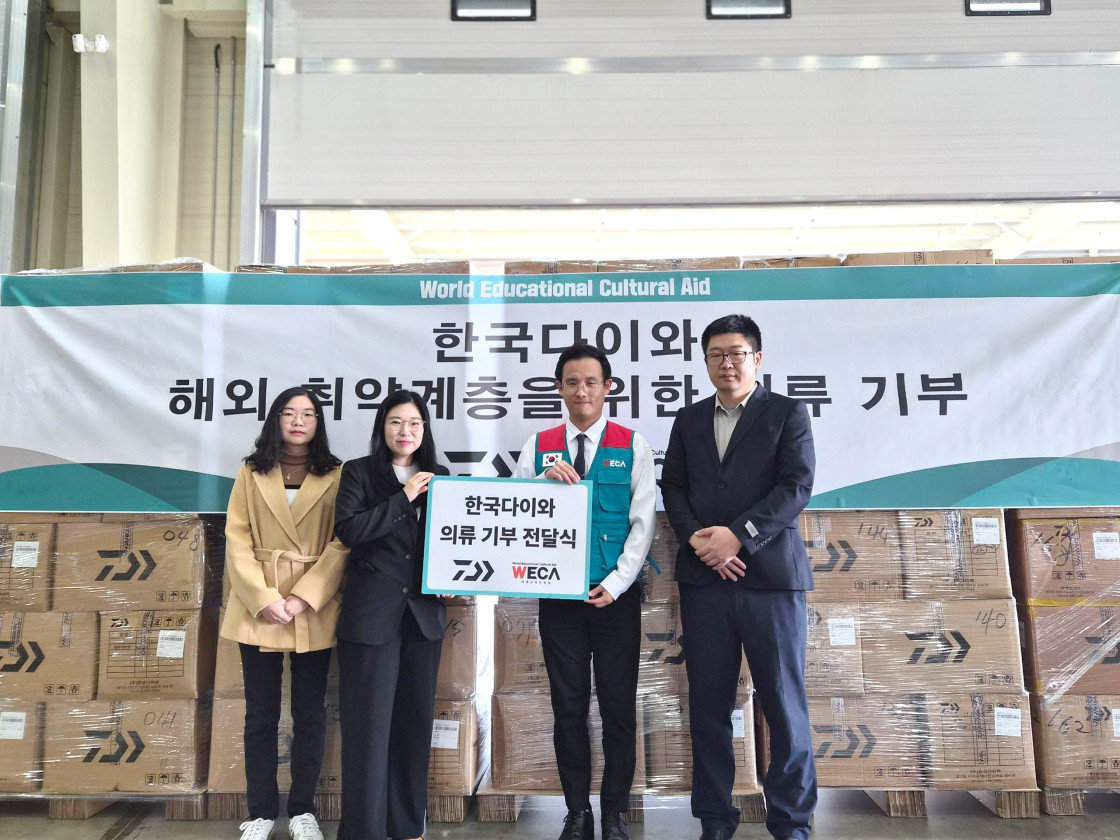 세계교육문화원(WECA)이 한국다이와(대표 최학모)로부터 약 14억 원 상당의 사계절 의류 기부를 받았다. 이번 기부는 재킷, 티셔츠, 팬츠 등 다양한 시즌 아이템으로 구성되어 있으며, WECA를 통해 해외 취약계층 및 도움이 필요한 지역사회에 전달될 예정이다.