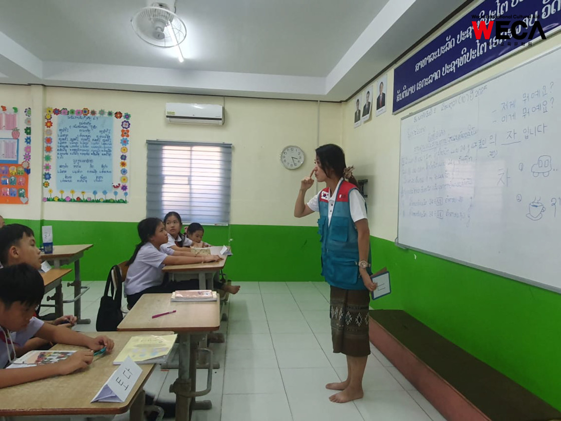 현재 싸완나켓 엘림학교 한국어 수업에는 3~5학년 총 68명이 수업을 듣고 있습니다. 아이들은 자음 7자(ㅇ,ㅈ,ㅊ,ㅋ,ㅌ,ㅍ,ㅎ)를 배우고 기초 회화를 익히는 중입니다. 교실 안에는 아이들의 웃음소리가 퍼졌습니다. 아이들은 허공에 글자를 그리며 발음을 따라 하고, 교실의 물건을 가리키며 한국어로 더듬더듬 대화했습니다.