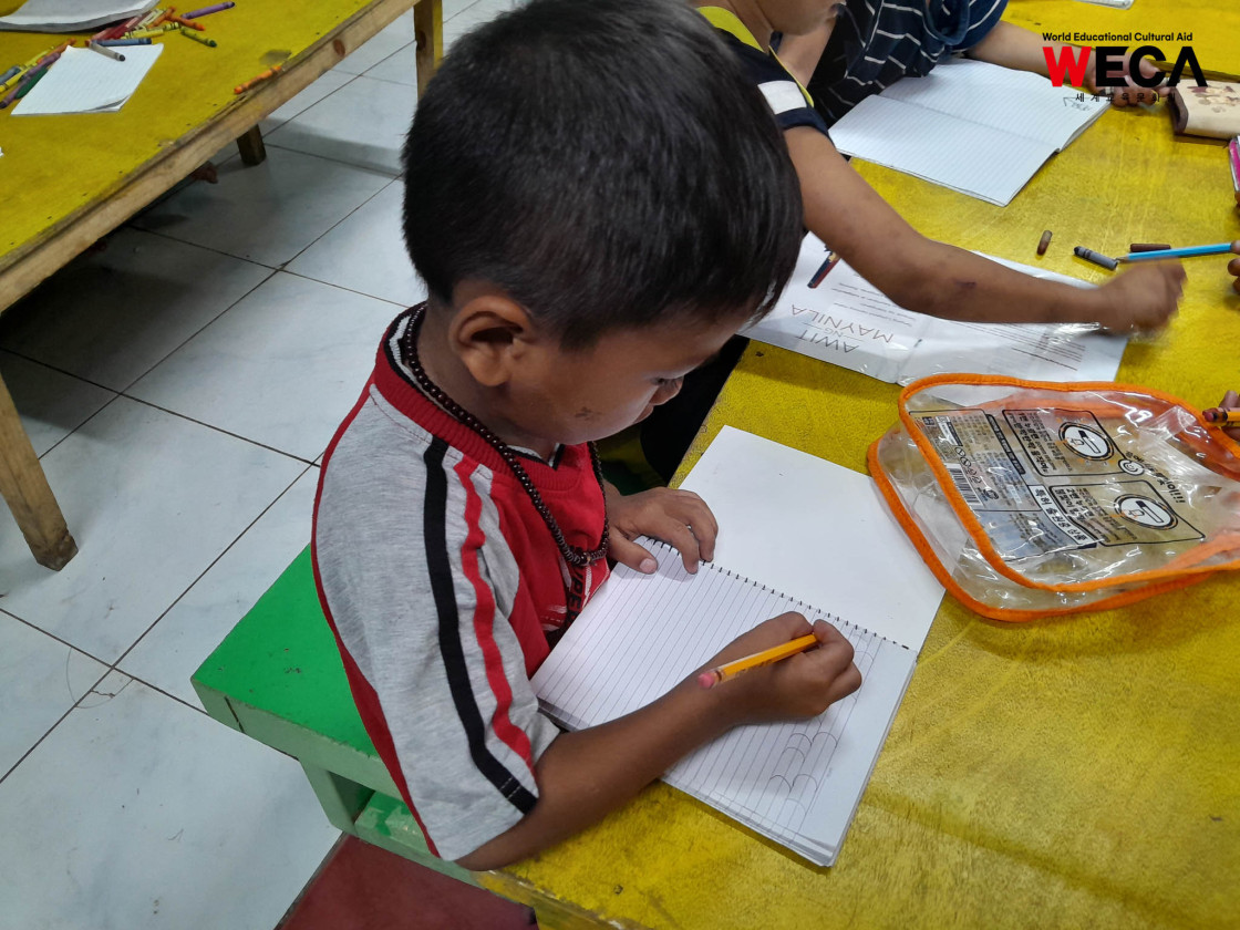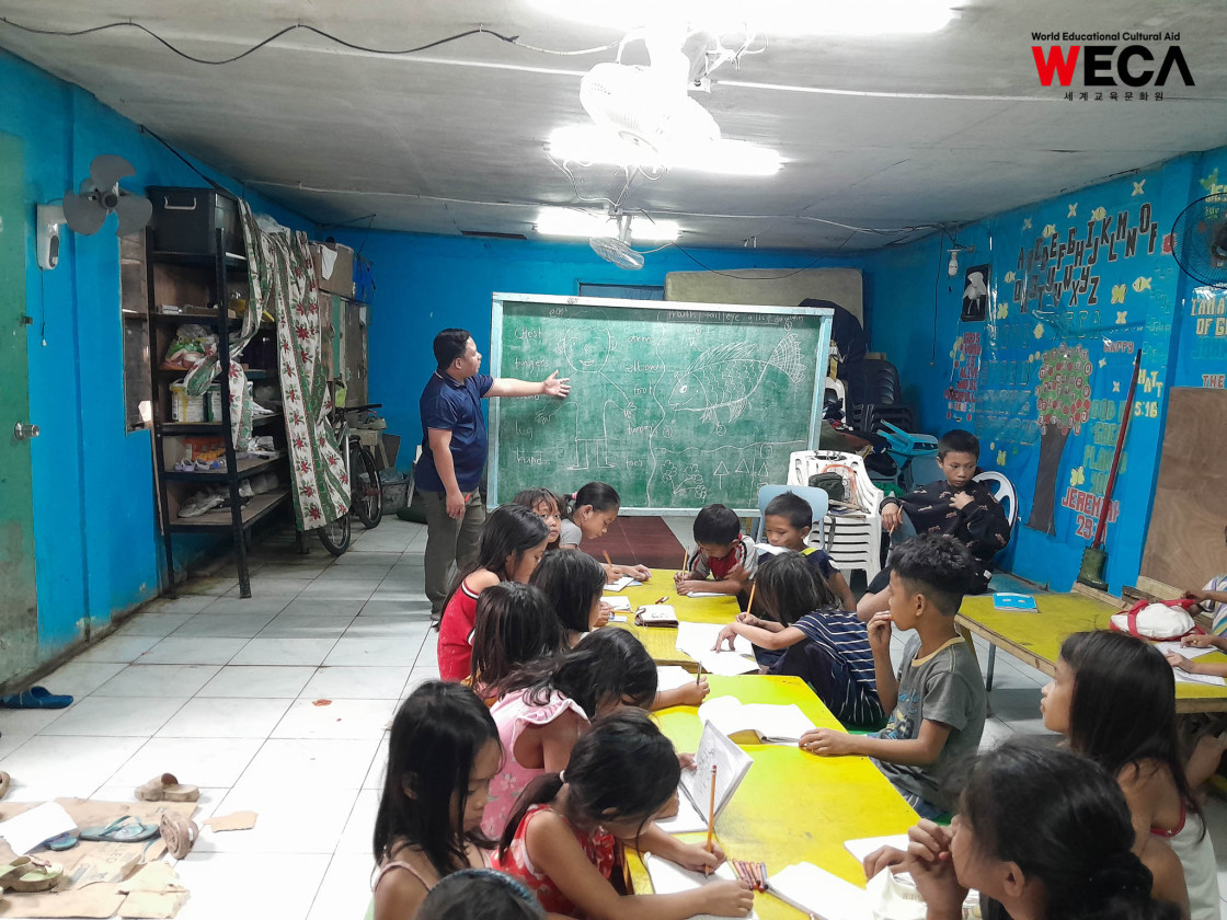 필리핀 마닐라 톤도 지역의 WECA 랭귀지스쿨에서는 40명의 아이들이 오전반과 오후반으로 나뉘어 꾸준히 수업에 참여하고 있습니다. 도시의 쓰레기가 모이는 열악한 환경 속에서도 아이들은 배움을 포기하지 않고 교실로 발걸음을 옮기고 있습니다.