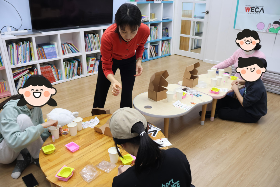 이번 캠페인에는 WECA 서포터즈 김세인 단원도 함께해 더욱 뜻깊은 시간이 되었어요. 손안에 쥔 작은 비누 하나가 누군가에게는 깨끗한 하루, 그리고 따뜻한 응원이 될 수 있다는 걸 아이들도 자연스럽게 배워갔답니다.