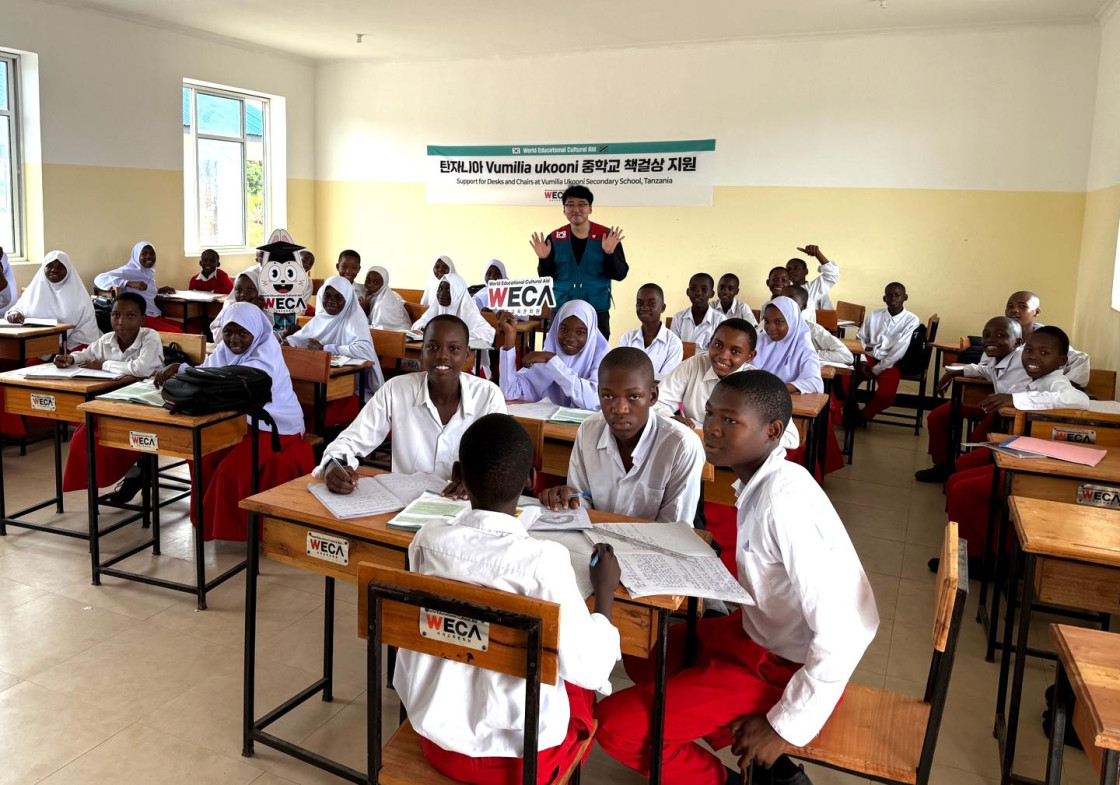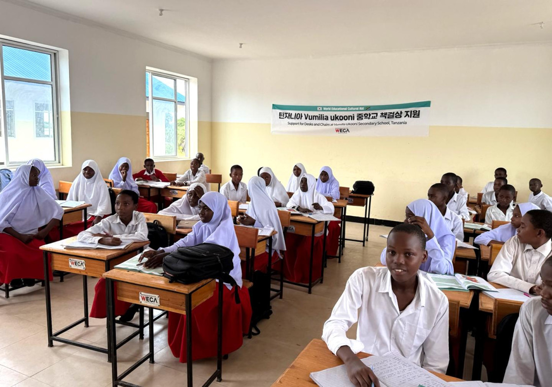 이에 세계교육문화원은 탄자니아 Vumilia Ukooni 중학교 아이들에게 책걸상 지원을 하였습니다. 이제는 탄자니아 아이들은 편안한 자세로 책걸상에 앉아 집중하며 수업을 들을 수 있게 되었습니다. 책걸상에서 공부하게 된 학생들은 “정말 감사합니다. 공부에 더 집중할 수 있게 되었어요”라며 웃음꽃을 피웠습니다.