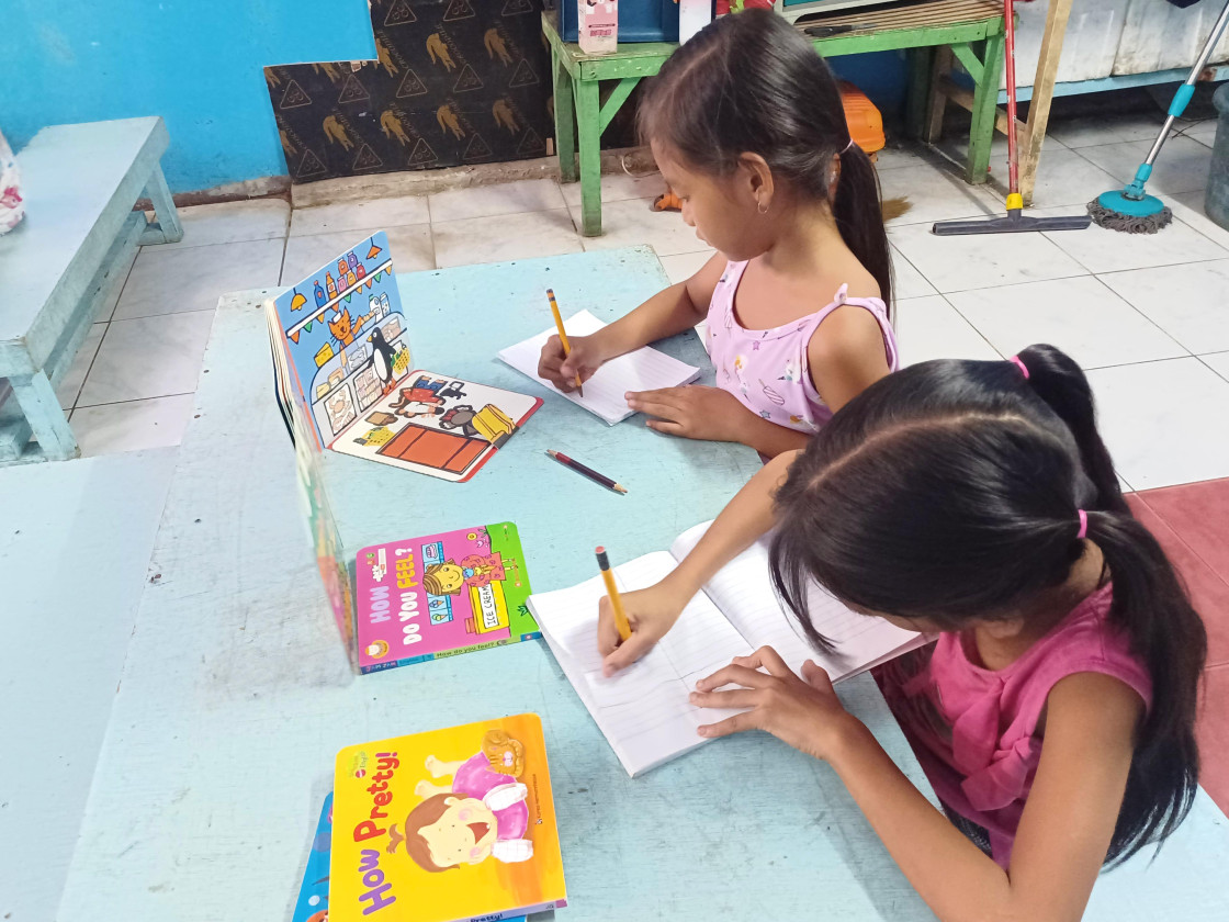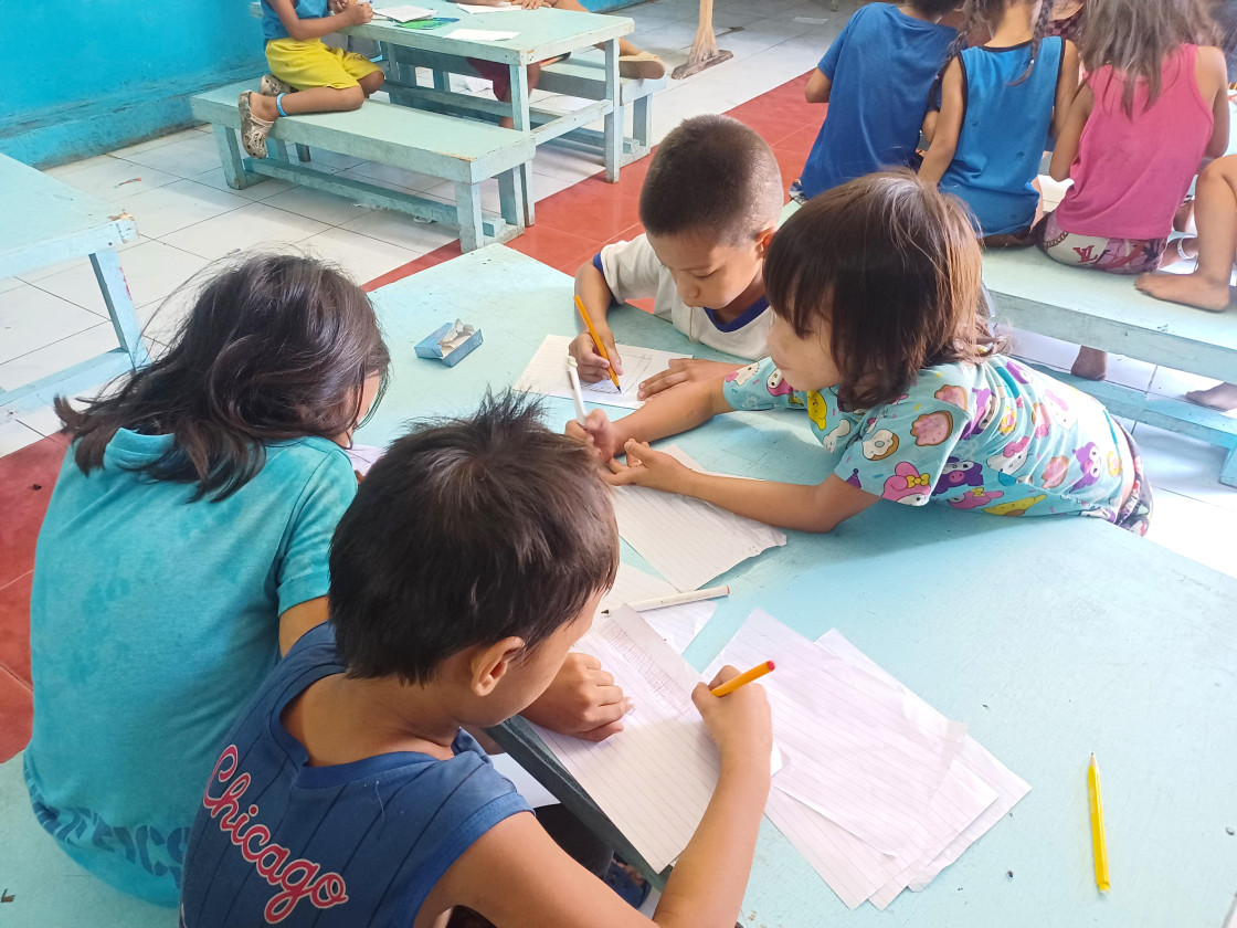 필리핀 아이들은 영어와 따갈로그어를 배우고, 미술 시간엔 마음껏 그림을 그리고 있습니다. 그리고 수업이 끝난 뒤엔, 영양이 부족한 150명의 아이들에게 무료급식을 나눠주었습니다.