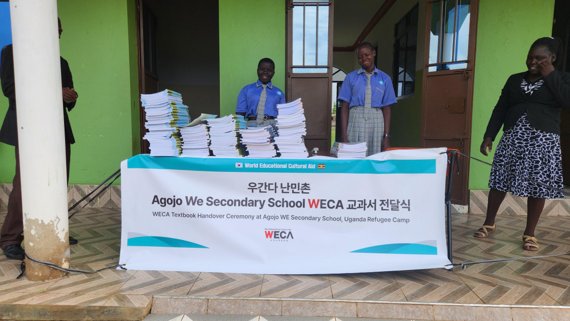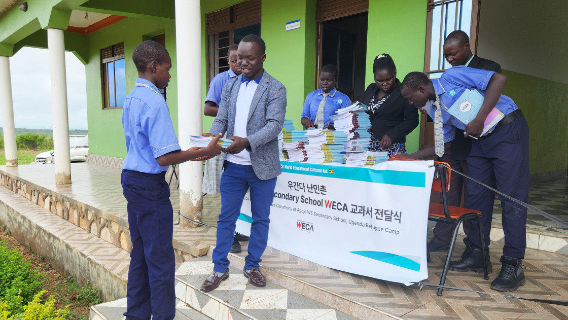 아프리카 우간다 난민촌에 위치한 어드주마니 WECA 세컨더리 스쿨 아이들에게 교과서를 전달했습니다. 깨끗한 교과서 한 권 없이 공부하던 아이들은 이제, 후원자님께서 보내주신 새 교과서로 배움을 이어갈 수 있게 되었습니다.