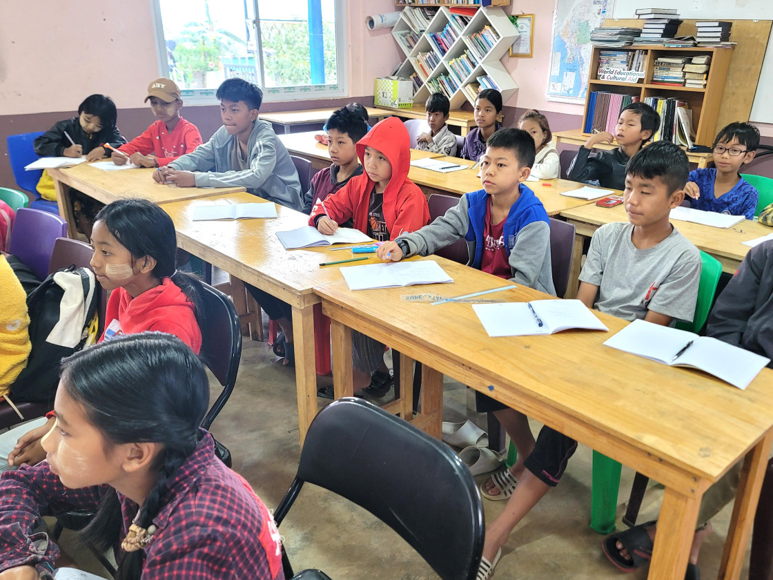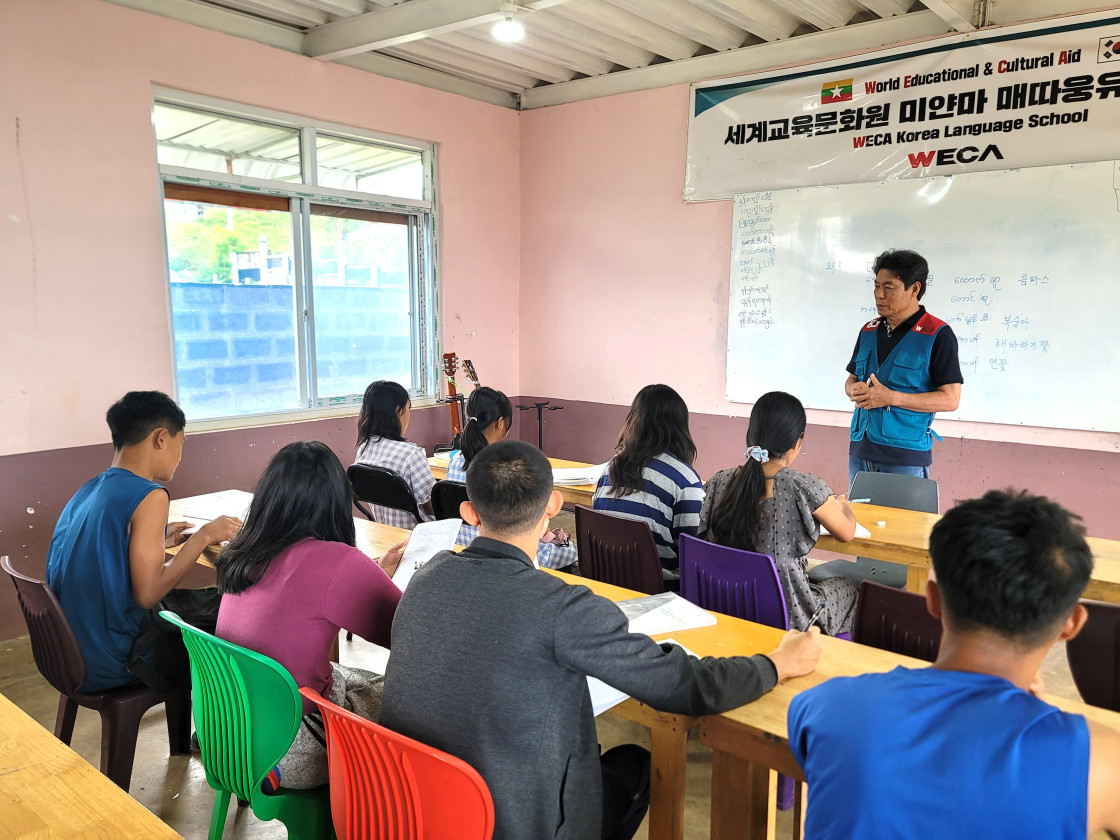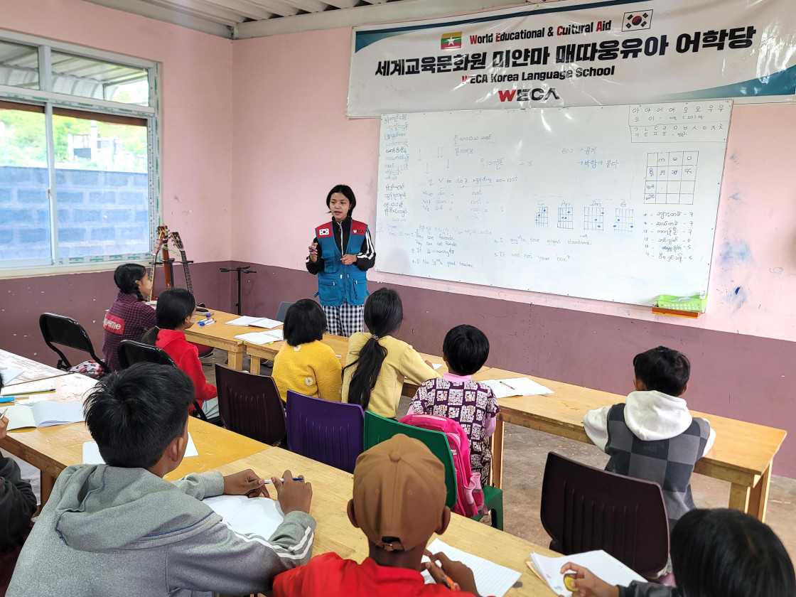교육과 문화의 기회가 부족했던 미얀마 아이들은 세계교육문화원이 지원하는 매따웅유아 어학당에서 공부를 하고 있습니다. 아이들은 미얀마어를 비롯한 영어, 수학, 과학 등 기초 과목을 배우며, 자신의 미래를 그려나가고 있습니다. 수업 시간마다 선생님의 말씀을 놓치지 않으려 집중하는 아이들의 눈빛이 참 기특하답니다.