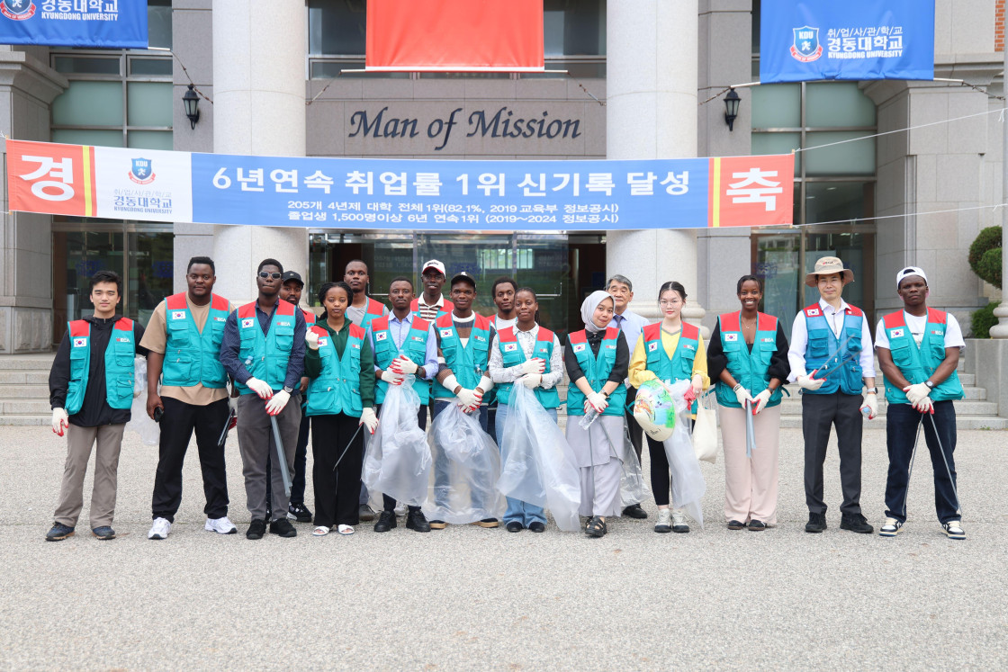장학금 전달식이 끝난 후에는 유학생들과 함께 지역 환경을 위한 ‘플로깅’ 봉사활동도 진행했습니다. 거리에 있는 쓰레기를 주우며 유학생들은 지역을 아끼는 마음을 내며, 열심히 봉사활동에 참여하였습니다.