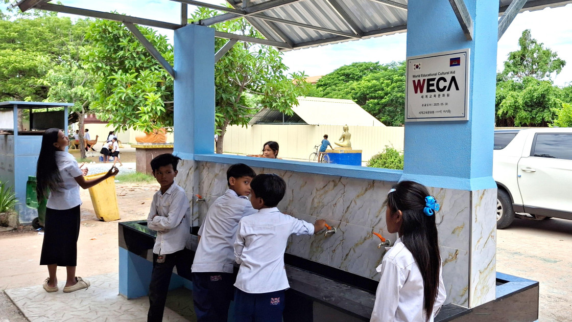 캄보디아 프놈펜 땅꺼쌍 초등학교에 깨끗하고 안전한 수도시설이 설치되었습니다. 땅꺼쌍 초등학교 아이들은 물 부족과 비위생적인 환경이 늘 걱정거리였습니다. 이제는 약 2,000여 명의 아이들과 교직원들이 감염병 걱정 없이 건강하게 학교생활을 할 수 있게 되었습니다.