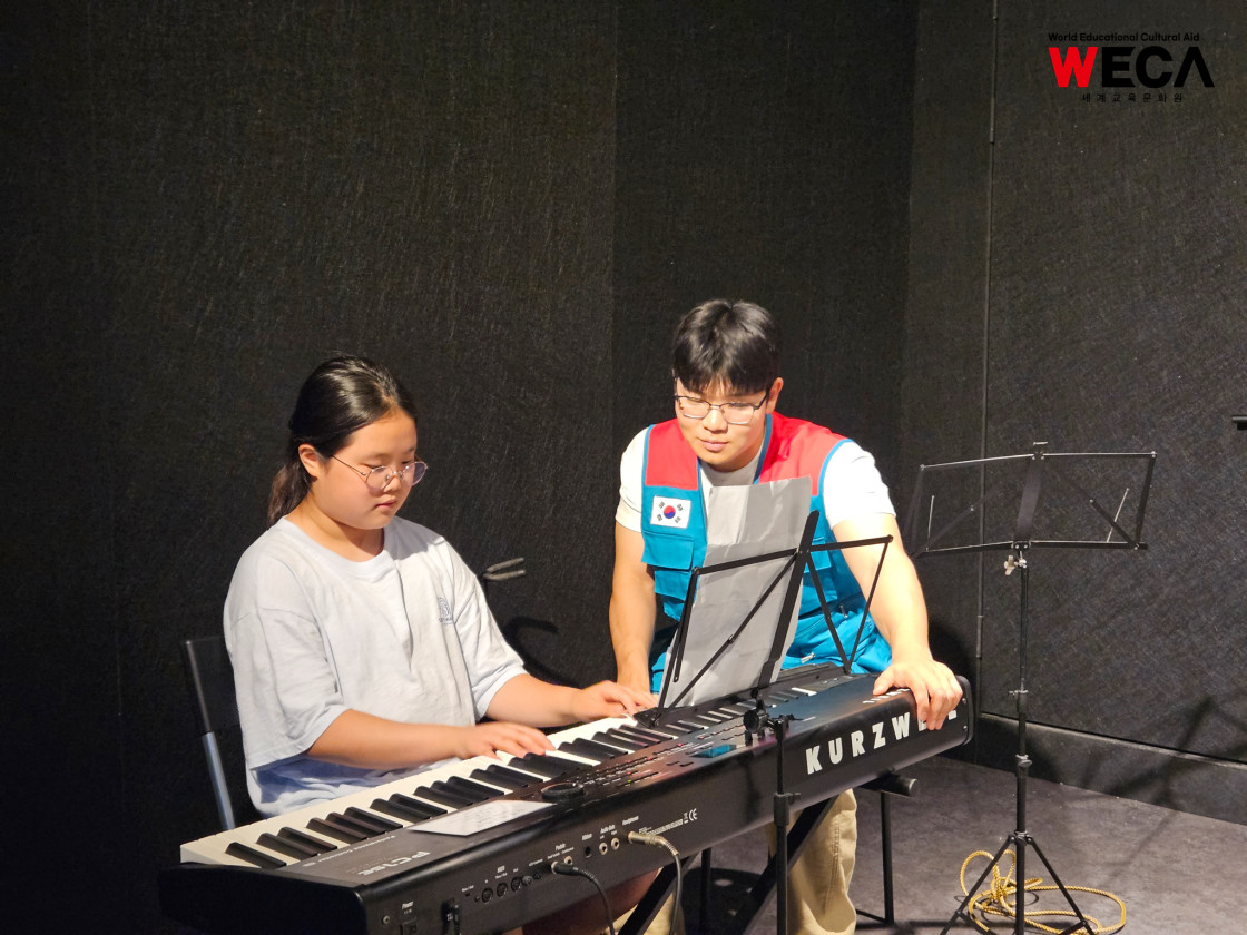 세계교육문화원은 지역아동센터 아이들에게 다양한 기회를 제공하기 위해 희망지원 프로젝트를 진행하고 있습니다. 아이들은 직접 밴드를 결성하여 기타, 베이스, 키보드, 드럼, 보컬 등 각자 원하는 파트를 맡아 전문 교육을 받았습니다.