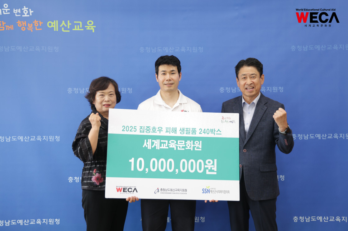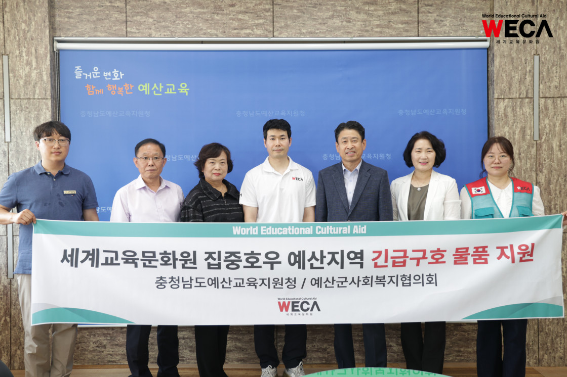 지난 9월 2일, 세계교육문화원 방정환 이사장은 예산군 집중호후 피해 지역에 식료품을 전달하고, 취약계층 교육환경 개선 후원금을 전달하였습니다.