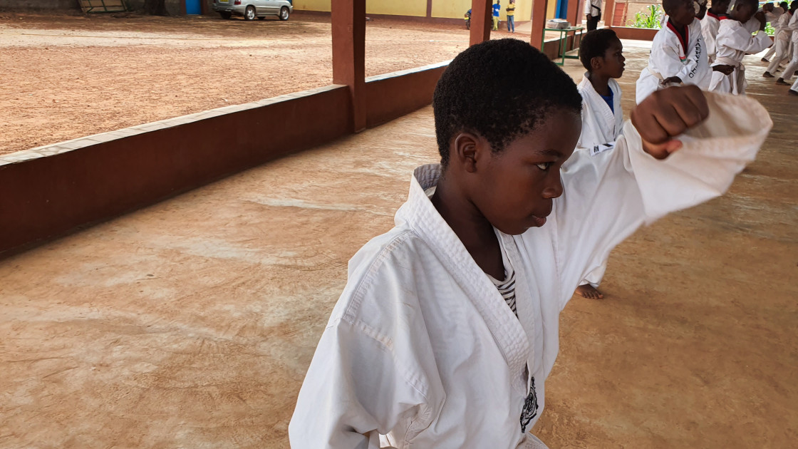 부르키나파소 열매중학교 1~3학년 아이들이 매주 정규수업 과정으로 태권도를 배우고 있습니다.