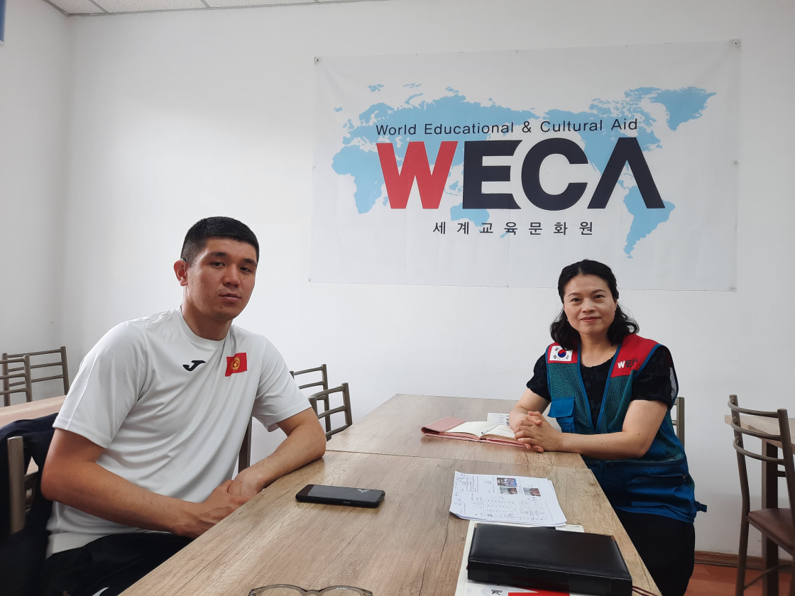 키르기스스탄 한국어학당에서 새로운 학생들과 선생님이 즐겁게 공부하고 있습니다.