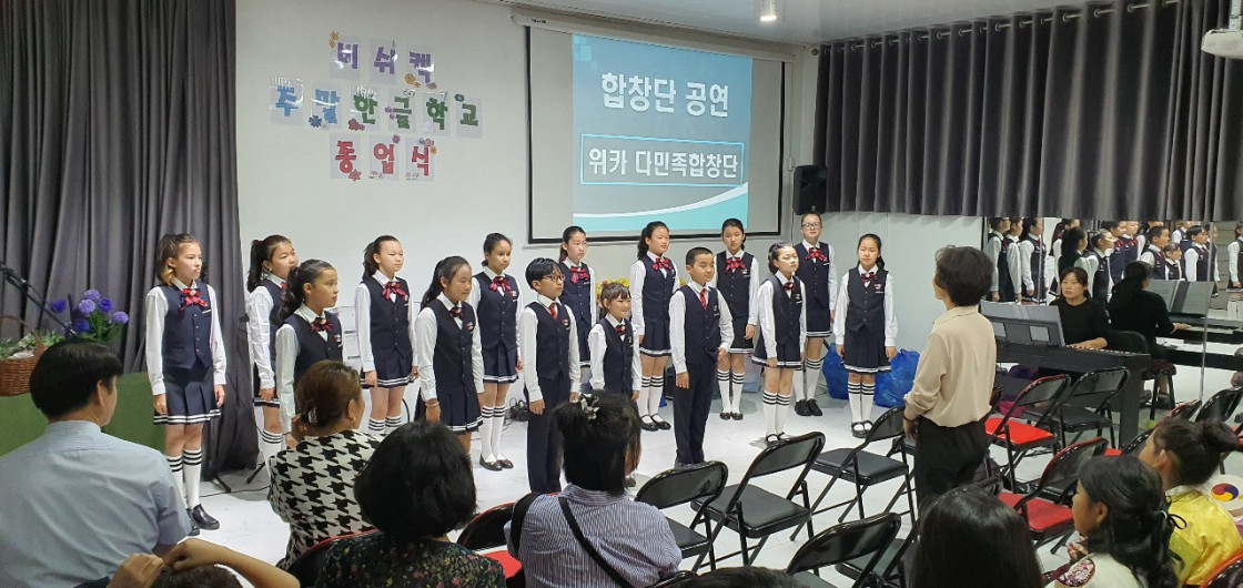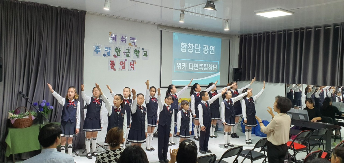 주말 한글 학교에서 초청 공연으로 위카 어울림합창단이 연주자로 나섰습니다.