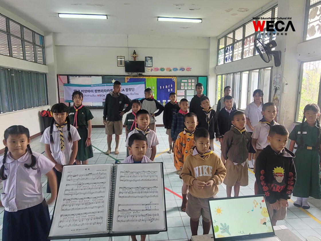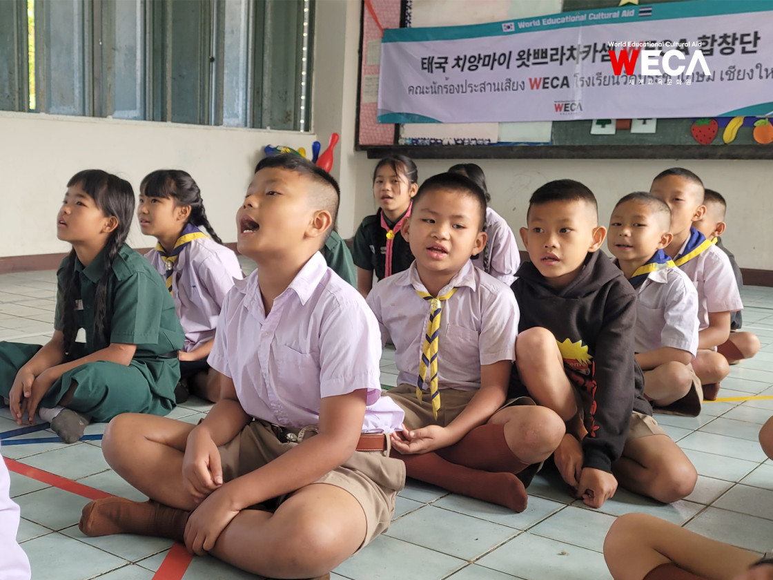 태국 치앙마이 산자락에 위치한 왓쁘라차카쎔학교에서 아이들의 맑은 노랫소리가 울려 퍼지고 있습니다. 3월 1째주부터 2째주까지, 세계교육문화원(WECA) 합창단 학생들은 다가오는 특별한 무대를 준비하며 구슬땀을 흘렸습니다.