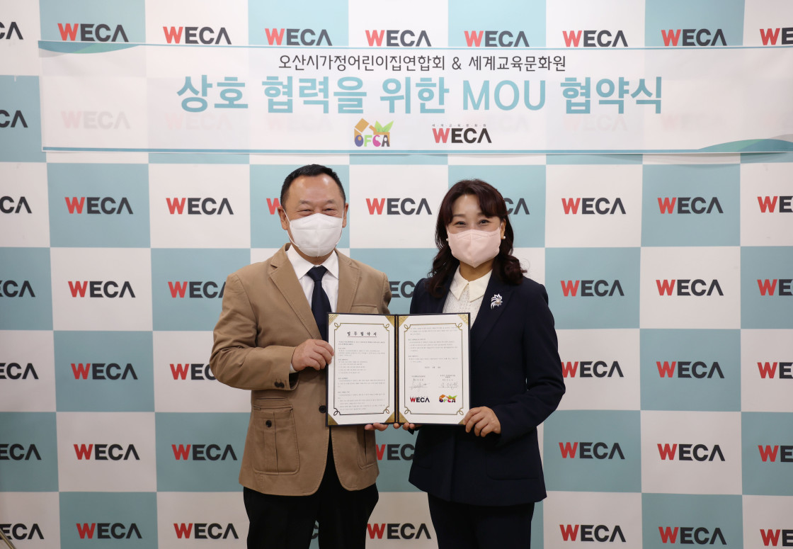 지난 10월 18일, 세계교육문화원 WECA는 오산시가정어린이집연합회와 업무 협약을 맺었습니다.