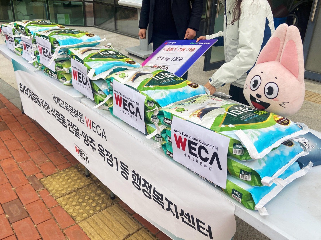 세계교육문화원은 쌀 10kg 100포대를 양주 옥정1동 행정복지센터에 전달했습니다. 전달한 쌀은 형편이 어려운 취약계층 및 소외계층 가정에게 전달될 예정입니다.