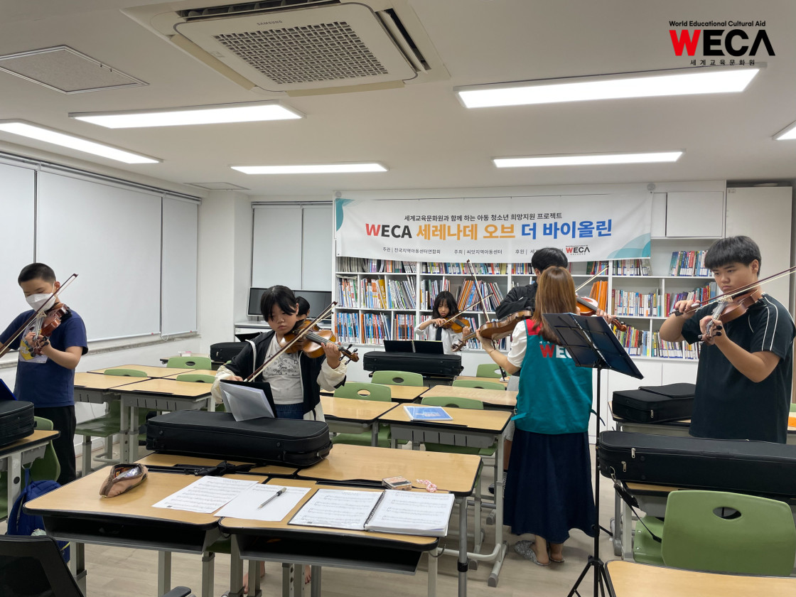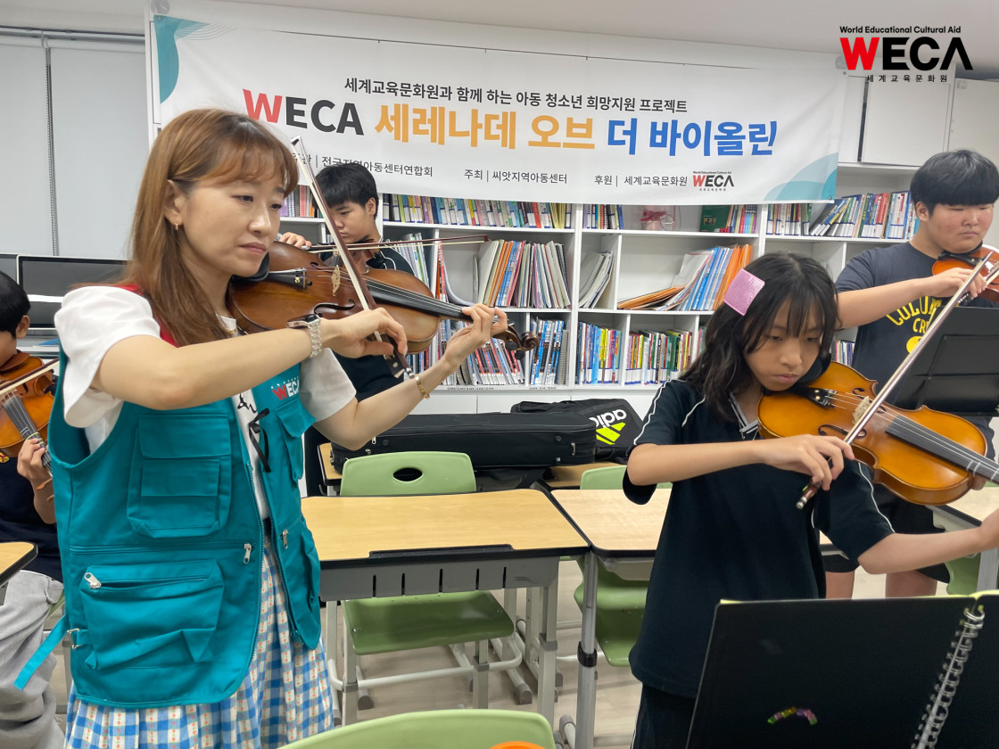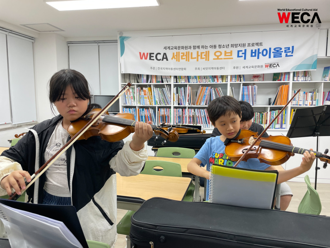 세계교육문화원은 문화예술을 접할 기회가 적은 지역아동센터 아이들을 위해 ‘세레나데 오브 더 바이올린(Serenade of Violin)’ 프로그램을 진행하고 있습니다. 이 교육은 단순한 악기 수업이 아니라, 아이들이 음악을 통해 자신을 표현하고 세상과 소통하는 법을 배우는 성장의 여정입니다.