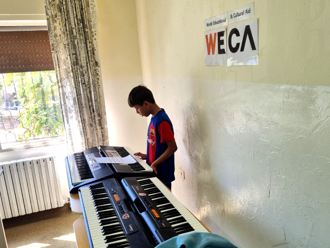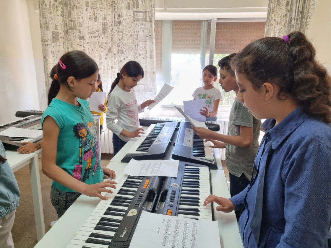 암만 생명나무센터에서 요르단 아이들은 악보 계이름 읽는 법을 배우며, 그에 맞춰 피아노 연주 연습을 하고 있습니다. 아이들에게는 친구들과 함께 피아노 건반을 두드리며 화합하고, 서로의 마음을 나누는 시간이 참 소중하답니다. 후원자님의 따뜻한 마음 덕분에 아이들은 밝게 웃음을 지으며 지내고 있습니다.
