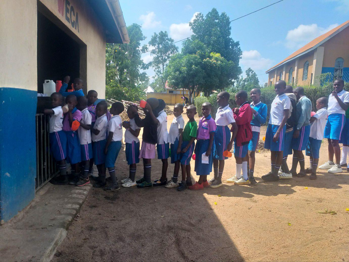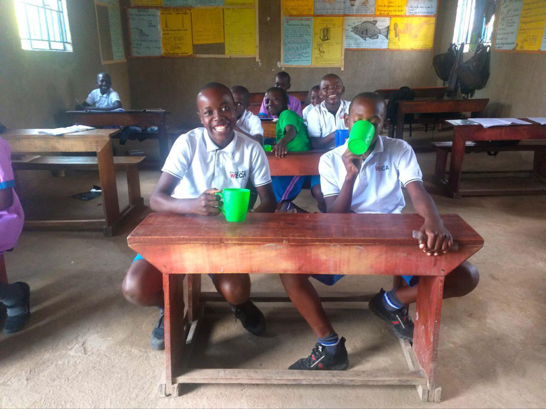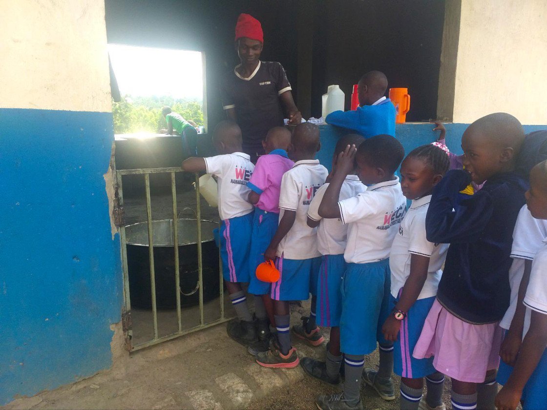 위스쿨 학생들은 첫 교시 수업 전 학교에서 제공하는 죽을 먹으며 든든하게 하루를 시작하고 있습니다. 이러한 식사 제공은 아이들이 수업에 집중할 수 있는 큰 힘이 됩니다.