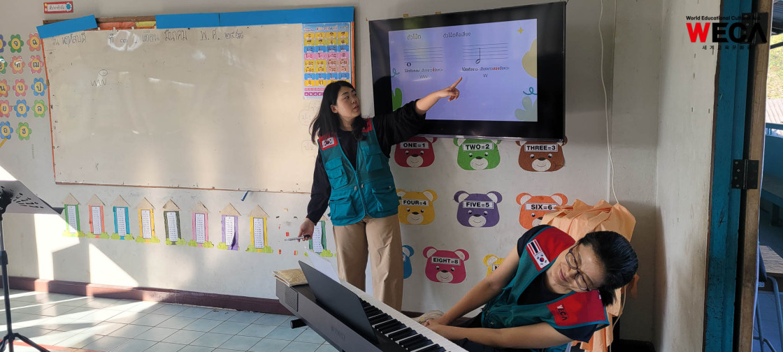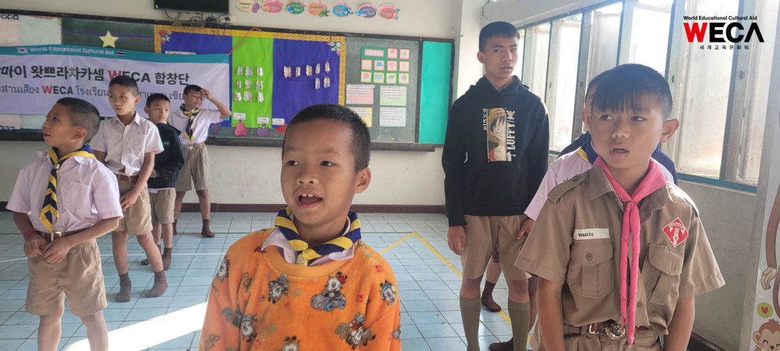 태국 치앙마이 왓쁘라차카쎔학교에서는 WECA의 지원으로 합창단 수업이 진행되고 있습니다. 문화·예술 교육의 기회가 상대적으로 부족한 환경 속에서, 아이들은 음악을 통해 새로운 배움과 희망을 경험하고 있습니다.
