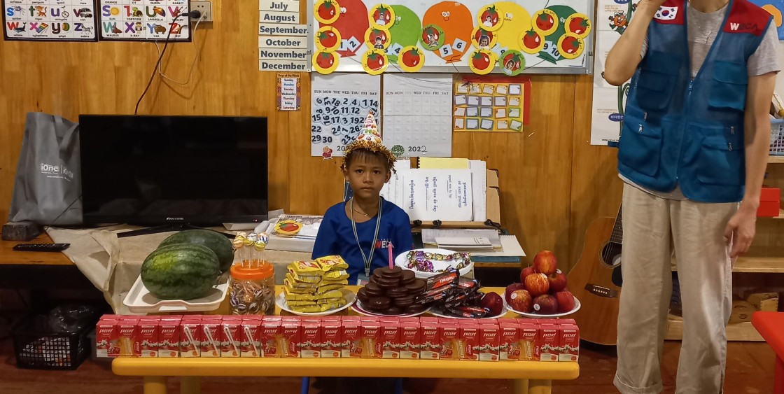 오늘 생일 잔치의 주인공인 '피아라'는 7살인데 태어나 처음으로 생일 축하를 받았습니다.