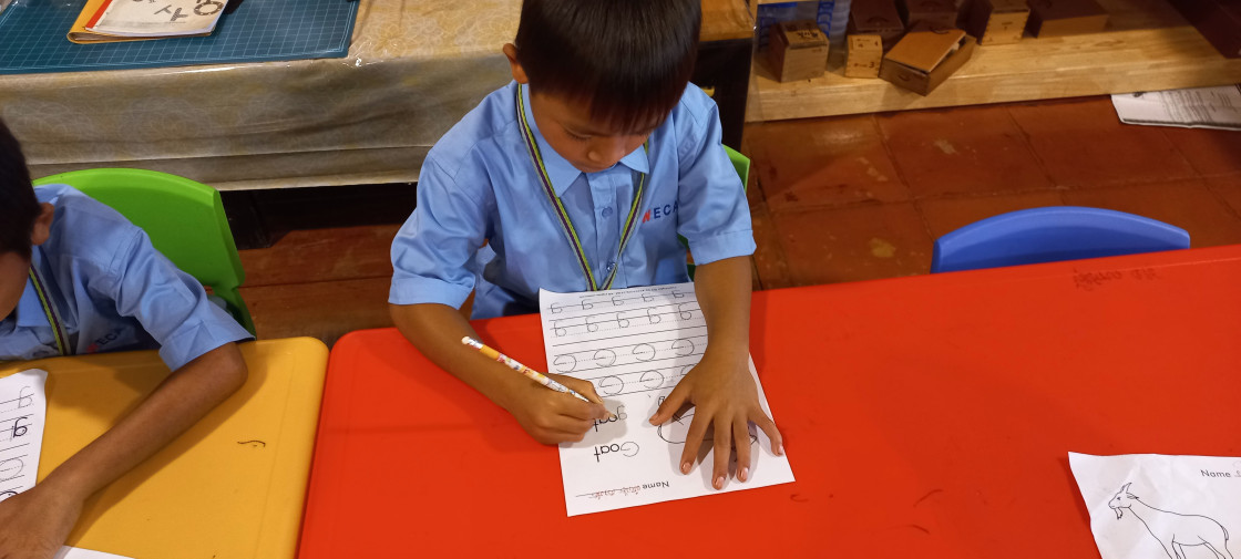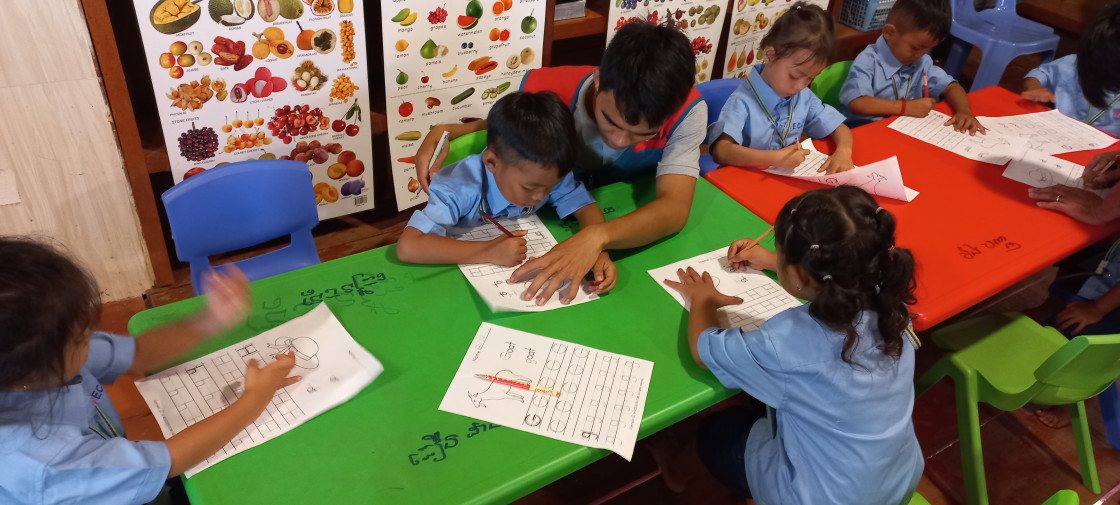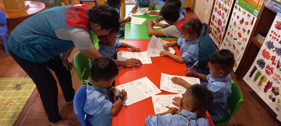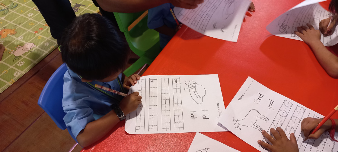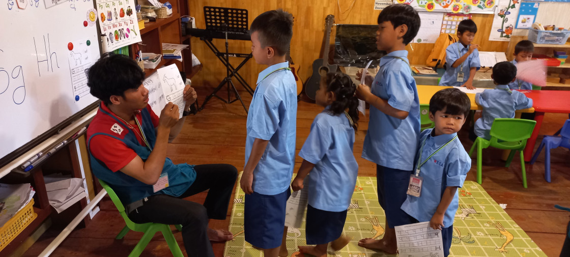 코안 유치원 아이들은 영어 알파벳을 익히고 있습니다.
