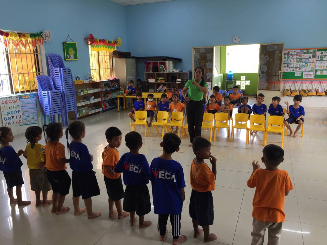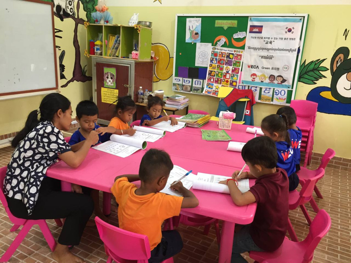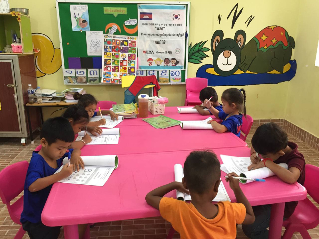 위카 그린 유치원 아이들은 재미있는 정규 수업과 게임 프로그램으로 교사들의 지도에 따라 수업에 임하고 있습니다.