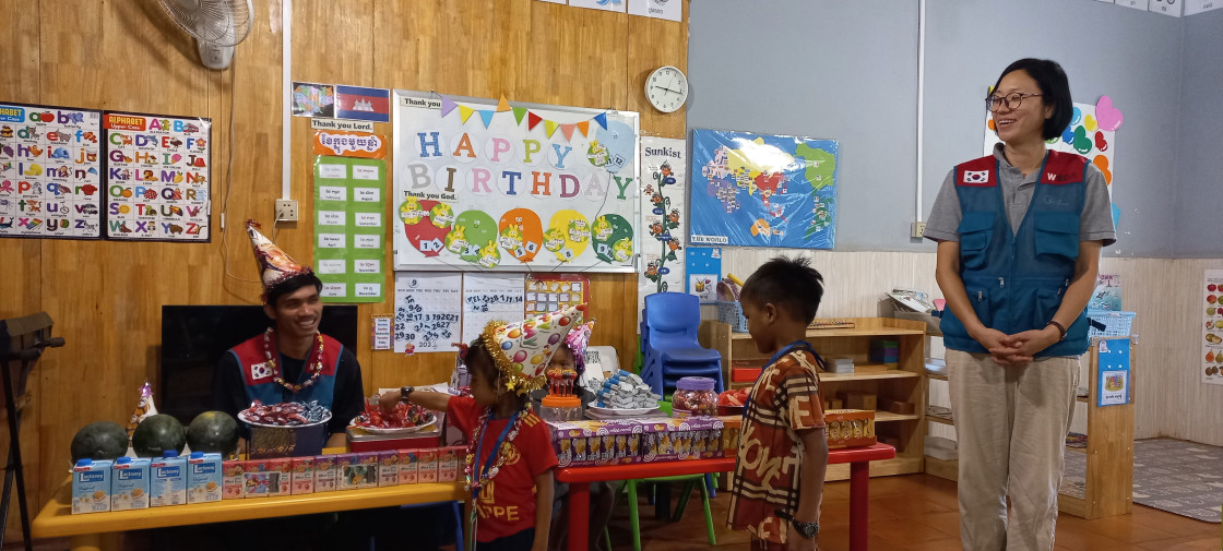 오늘은 4월 생일 잔치를 했습니다. 캄보디아의 4월은 새해 설날이 있고, 결혼식도 많이 열리는 달이기 때문에 온 가족이 축제의 기분에 젖어 들뜬 마음으로 일상을 보내게 됩니다. 이렇게 행복한 달에 태어난 아이들이 열심히 배우고 바른 어른으로 성장하길 한 마음으로 응원한 하루였습니다.