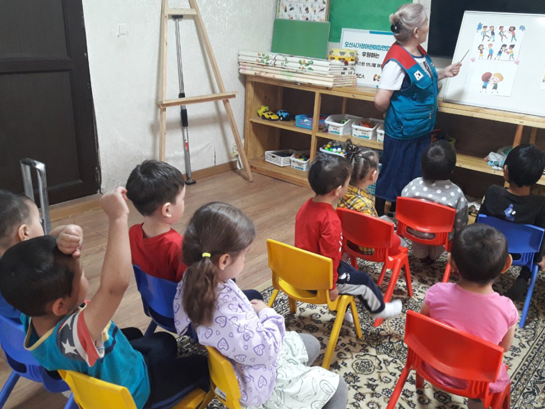 브니엘 어린이집에선 아이들에게 매일 안전교육을 합니다. 신호등 지키기와 건널목 건너기 교육으로 혹여나 생길 위험 상황을 대비하고 있습니다. 유아부 아이들이 꾸준히 늘어 어느새 11명이나 모이게 되었습니다. 다툼 없이 함께 어울려 놀며 선생님 말씀도 아주 잘 듣는 천사 같은 아이들입니다. 학구열도 뛰어나 한번 배운 내용은 잘 잊어버리지도 않습니다. 당당히 손들고 발표하는 아이들이 참 대견합니다.