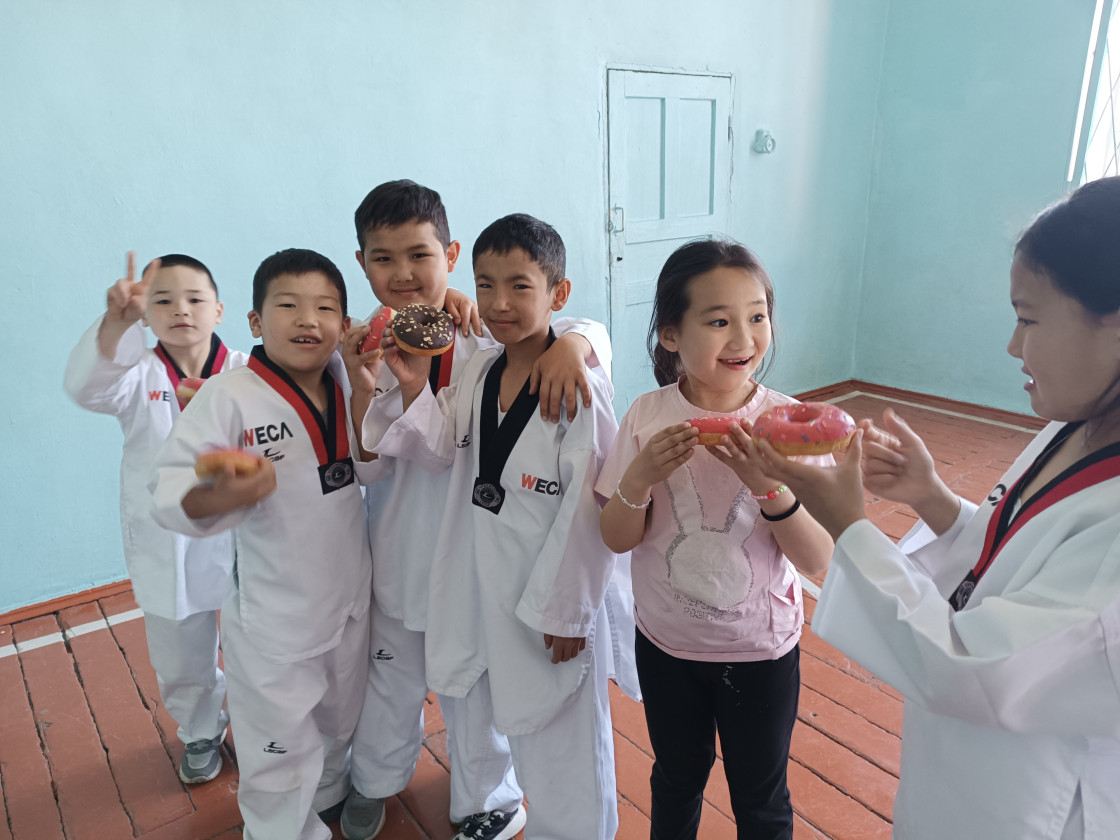 태권도 교실의 아이들은 국가대표 선수를 꿈꾸며 즐겁게 연습 중입니다. 오늘은 언제나 밝고 씩씩하게 연습에 임하는 아이들을 격려하기 위해 맛있는 도넛을 준비했는데요. 간식 때문일까요? 달려들어 품에 안기는 아이들의 모습에 그만 웃음이 터져버렸습니다.