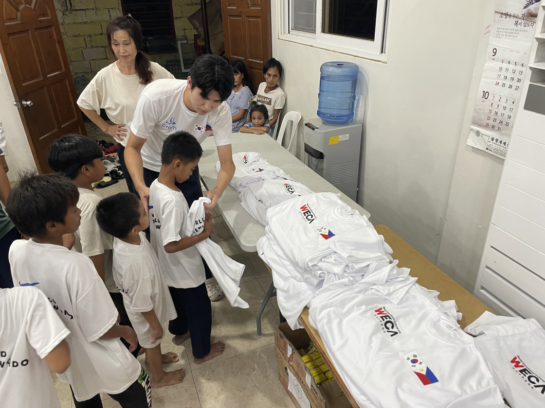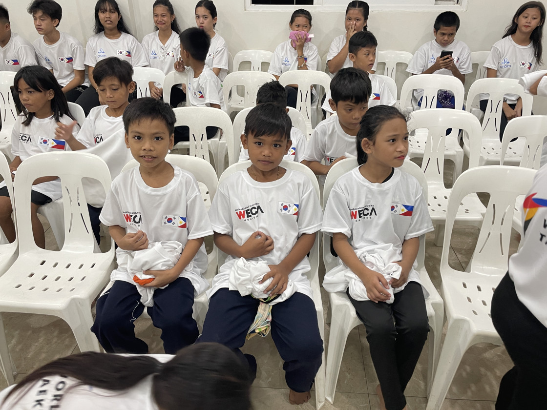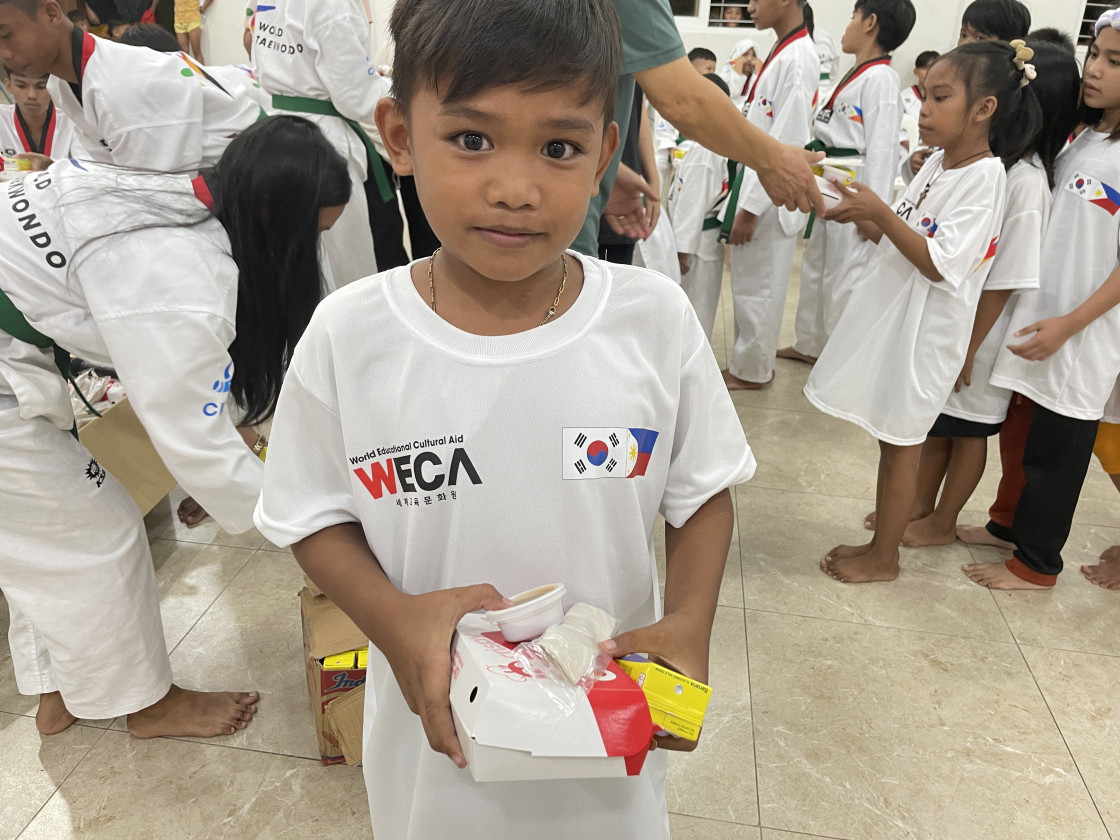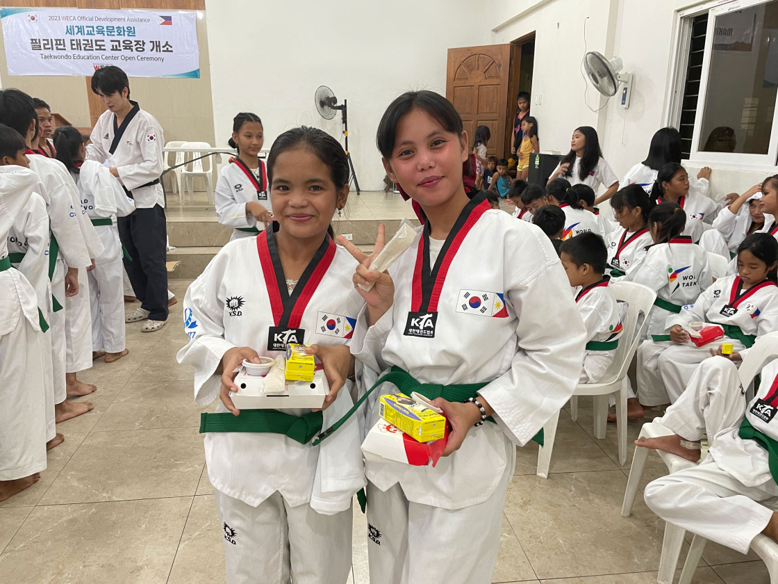 한국의 태권도에 관심이 있지만, 어려운 형편 탓에 배움의 기회가 부족한 아이들을 위해! 필리핀 아이들을 위해 세계교육문화원은 마닐라 바콜지역에 태권도 교실을 새로 열었습니다. 현재 WECA 바콜 태권도 교실에선 약 100여 명의 아동을 대상으로 주 4-5회 태권도 수업을 진행하고 있습니다. 지금 이 시간에도 아이들은 깨끗한 티셔츠와 도복을 입고, 친구들과 소중한 꿈을 펼치는 중입니다. 아이들은 체계적이고 정기적인 태권도 수업이 너무나 필요했다며 이런 기회를 선물해준 세계교육문화원과 함께해주신 후원자님께 감사 인사를 전했습니다. 감사합니다. 후원자님 덕분에 아이들에게 태권도 교육을 지원할 수 있었습니다.