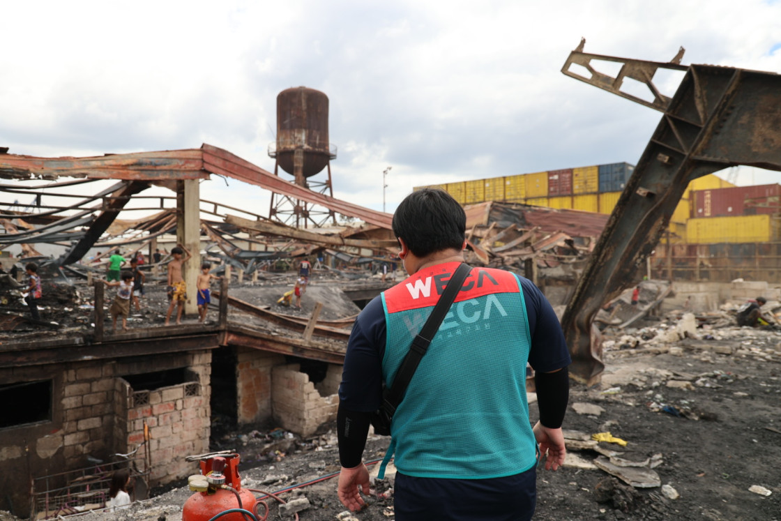 국가에서 대피소를 마련해주긴 했지만, 그곳은 상상 이상으로 열악한 공간이었습니다. 무더위는 당연했고, 4인용 텐트에 두 가족, 많게는 네 가족이 배정되었기에 사람들은 차라리 거리로 나와 구석에서 잠을 청한다고 합니다. 화장실도 마땅치 않은 탓에 텐트 주변은 오줌 지린내로 코가 아팠고, 아이들은 여기저기 검은 칠을 한 채 굶주린 배를 부여잡고 거리에 앉아서 시간을 보내고 있었습니다. “이곳은 지옥이에요. 이 생활이 언제까지 이어질지 모르니 너무 막막해요…” 세계교육문화원은 화재 소식을 접한 즉시 현장으로 긴급구호팀을 파견했습니다. 현장을 취재하며 이재민들에게 절실한 구호물자를 조사하였고, 그 덕에 지역관공서의 협조를 통해 도움이 필요한 이들에게 발 빠르게 구호품을 전달할 수 있게 되었습니다.