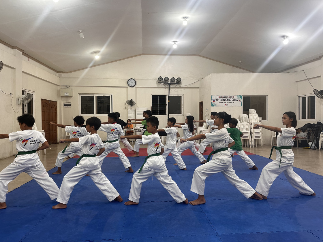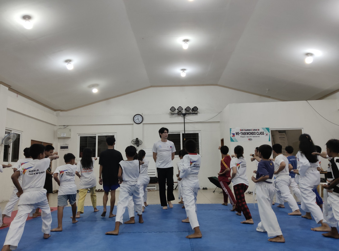 필리핀 아이들에게 태권도 수업을 선물하고 있습니다.