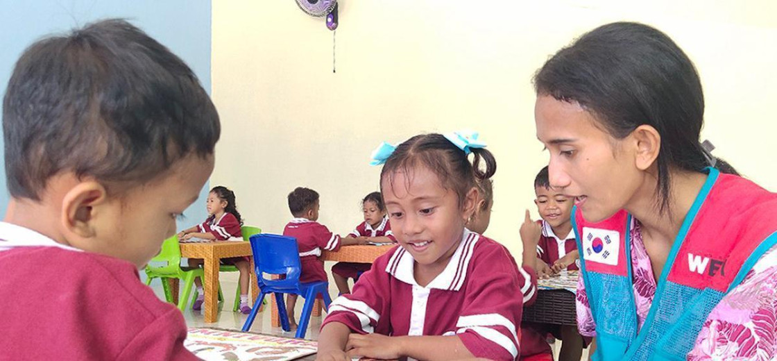 이곳에서 오탄 아이들은 선생님과 함께 영어 알파벳을 배우고, 체육 활동을 하면서, 즐겁게 유치원에 다니고 있어요. 특히 섬에서 사는 아이들이어서 그런지 지구 환경을 생각하는 환경 보호 수업에 관심이 많습니다. 작은 교실 안에서 시작된 이 배움은 아이들에게 더 큰 세상을 열어주는 첫걸음이 되고 있어요.
