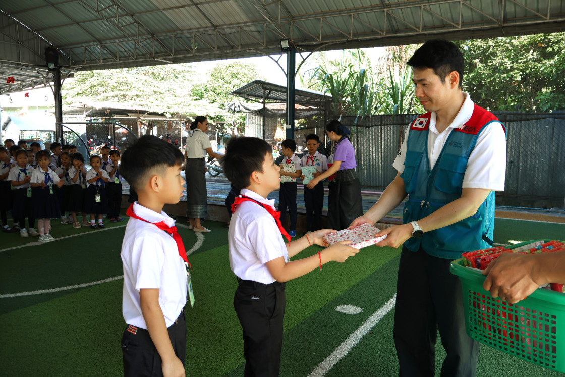 라오스 아이들을 위한 학용품 전달식도 진행했습니다. 학용품을 아이들에게 하나하나 나누어 주었고, 학용품을 받은 아이들은 웃으며, “감사합니다. 열심히 공부할게요”라고 말했습니다. 공부를 통해 미래의 희망을 키워나가는 라오스 아이들이 귀엽고 기특했습니다.