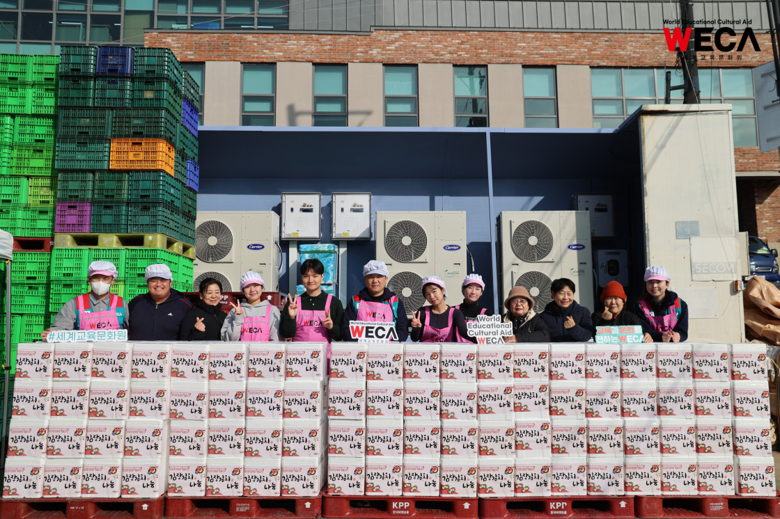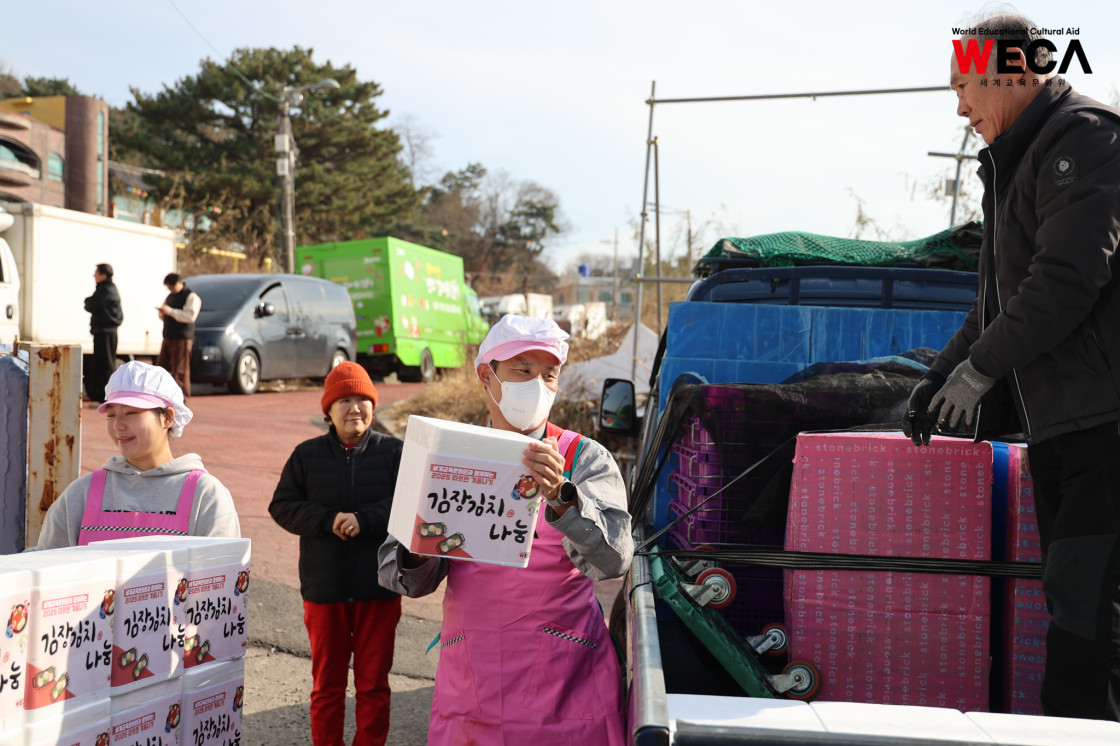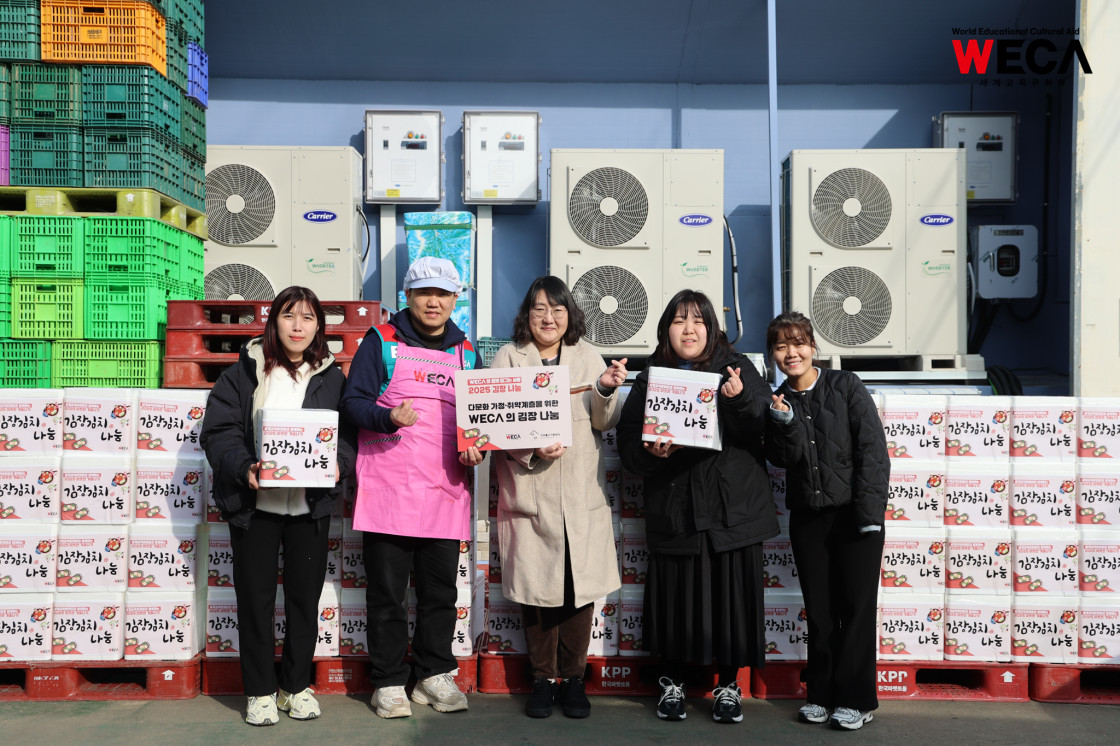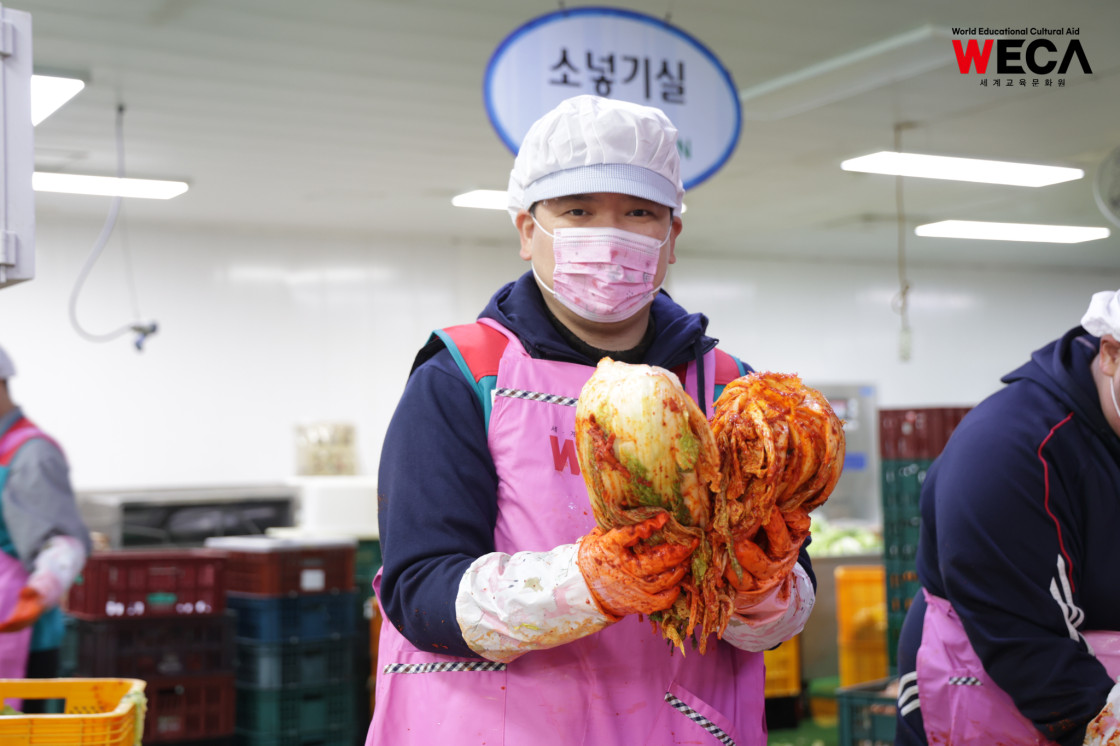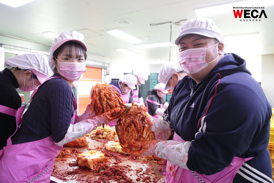세계교육문화원은 인천 연수구에서 WECA와 함께 담그는 사랑의 2025 김장나눔 봉사활동을 진행했습니다. 이번 활동은 겨울철 반찬이 부족해 끼니를 챙기기 어려운 다문화가정과 장애인 가정에 따뜻한 식탁을 전하고, 나눔의 가치를 함께 실천하기 위해 마련되었습니다. 이날 현장에는 WECA 임직원과 서포터즈, 자원봉사자 등 총 13명이 참여했습니다. 봉사자들은 사전 오리엔테이션을 통해 김장 봉사의 취지와 위생 수칙을 공유한 뒤, 위생모와 앞치마를 착용하고 절인 배추에 김장 속을 버무리고 포장하는 작업에 정성껏 임했습니다.