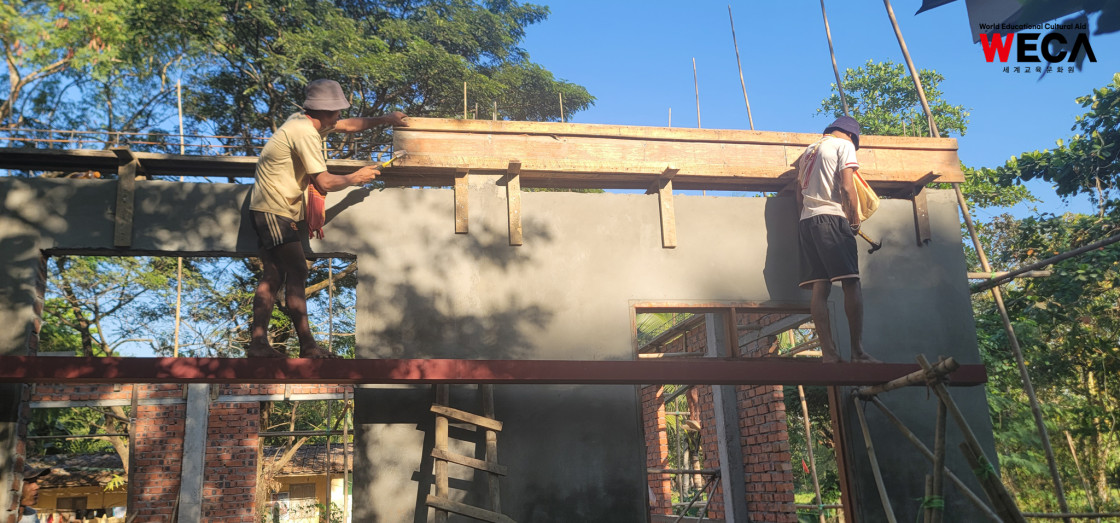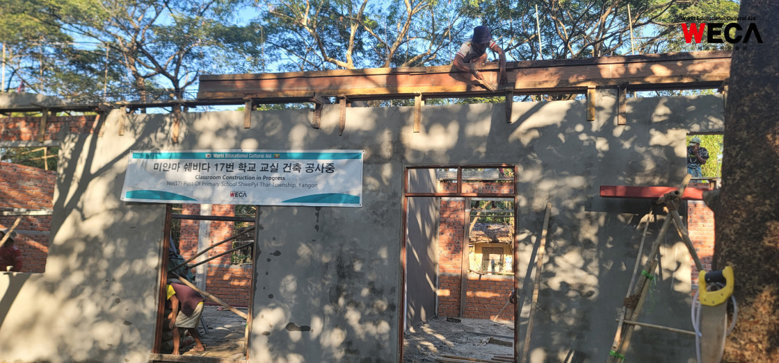 미얀마 WECA 17학교에서는 태풍과 지진으로 무너진 교실을 다시 세우기 위한 신축 공사가 계속해서 진행되고 있습니다. 아이들이 안전한 공간에서 공부할 수 있도록, 현장에서는 하루하루 책임감 있는 공정이 이어지고 있습니다.