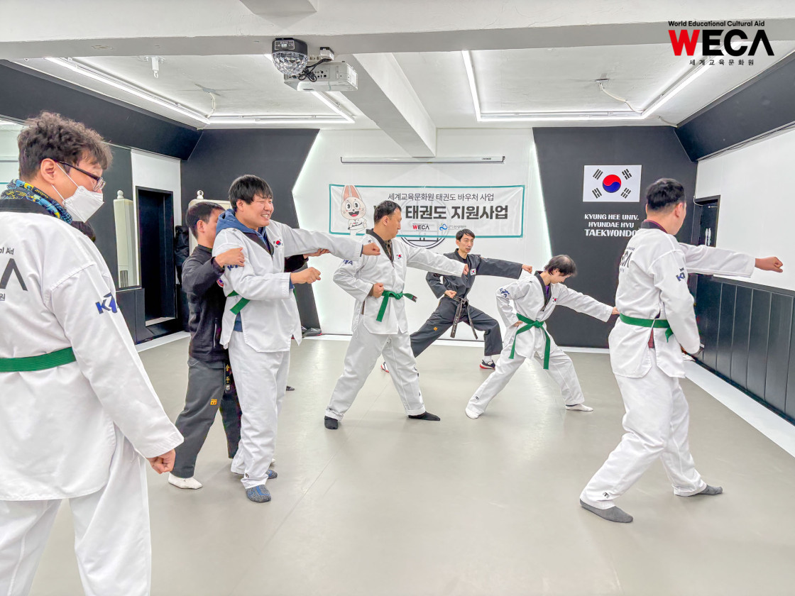 세계교육문화원은 경희대현대효태권도와 협력하여 국내 장애인을 대상으로 한 태권도 바우처 사업을 운영하고 있습니다. 이번 사업은 경제적·환경적 제약으로 체육 활동 참여가 어려운 장애인들이 태권도를 통해 신체 활동의 즐거움과 성취감을 경험할 수 있도록 돕기 위해 마련되었습니다. 참여자들은 전문 지도진의 체계적인 지도를 통해 기초 체력 향상은 물론, 균형 감각과 집중력, 자신감을 차근차근 키워가고 있습니다. 태권도 수업은 개인의 특성과 수준을 고려해 안전하게 진행되며, 단순한 운동을 넘어 규칙과 예절을 배우고 스스로를 믿는 힘을 기르는 시간이 되고 있습니다.