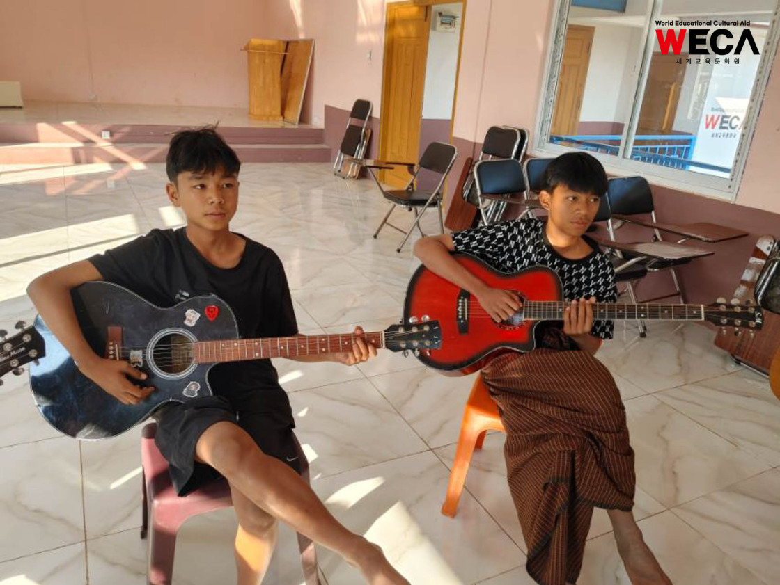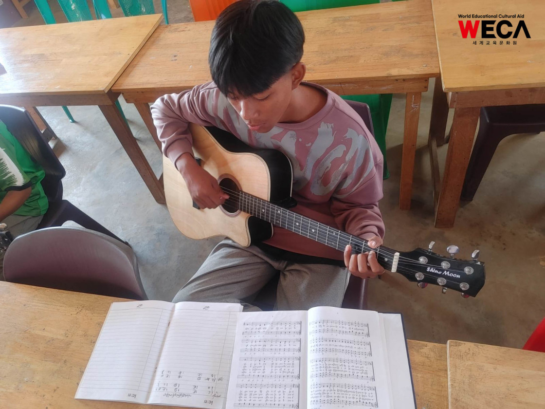 미얀마 WECA 위드홈에서 아이들의 반가운 소식이 전해졌습니다. 현재 미얀마는 초·중·고등학교가 방학 기간에 들어가 있어, 아이들은 학과 보충수업과 개별 학습을 이어가며 시간을 보내고 있습니다. 여가 시간에는 기타 연주와 독서를 통해 각자의 방식으로 배움과 성장을 이어가고 있습니다.
