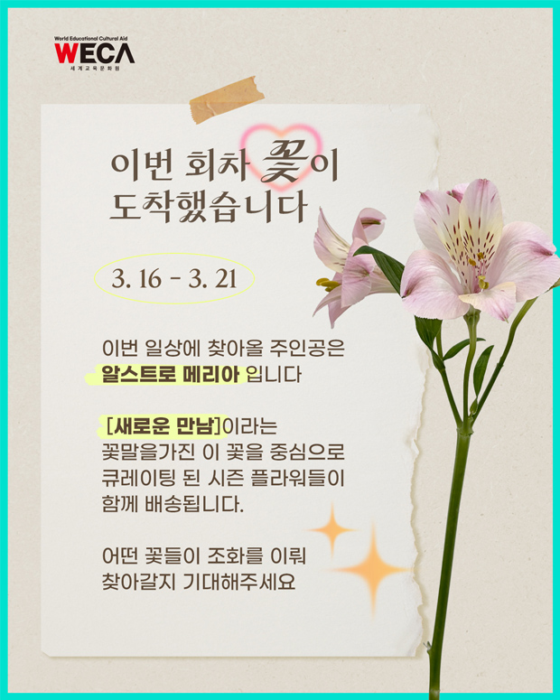 봄바람과 함께 찾아온 이번 회차의 주인공, 알스트로메리아를 소개합니다.