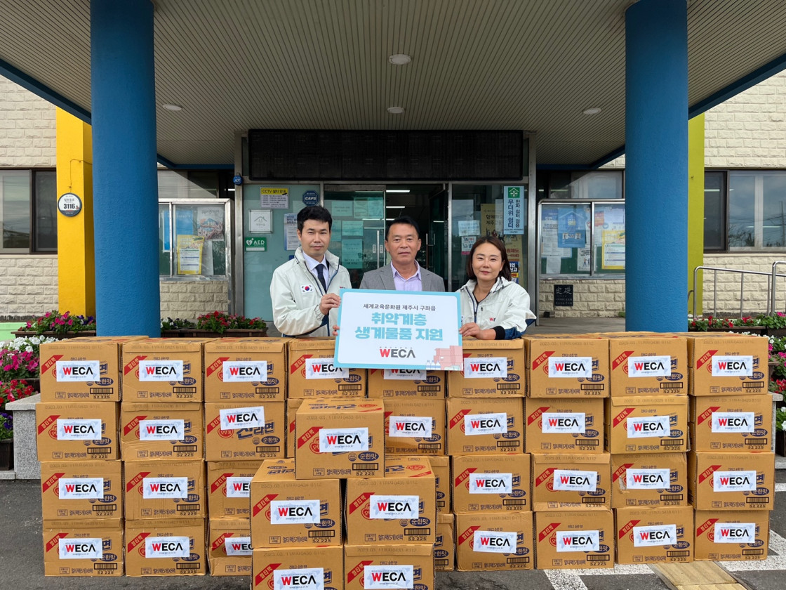 세계교육문화원에서는 100만원 상당의 라면 41박스를 구좌읍에 전달, 전달된 물품은 관내 취약계층에게 전달될 예정이다.