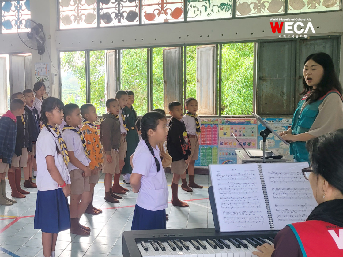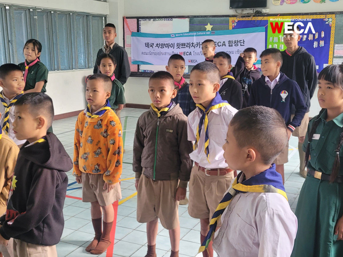 태국 치앙마이 산자락에 위치한 왓쁘라차카쎔학교에서 아이들의 맑은 노랫소리가 울려 퍼지고 있습니다. 3월 1째주부터 2째주까지, 세계교육문화원(WECA) 합창단 학생들은 다가오는 특별한 무대를 준비하며 구슬땀을 흘렸습니다.