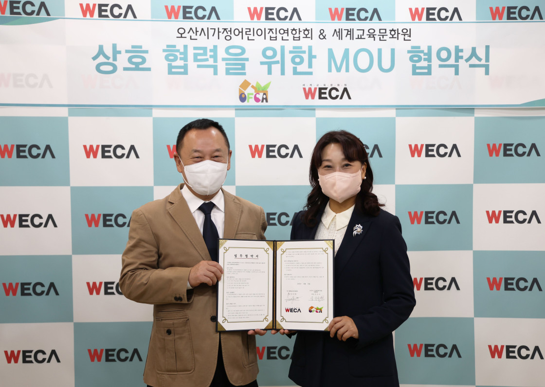 지난 10월 18일, 세계교육문화원 WECA는 오산시가정어린이집연합회와 업무 협약을 맺었습니다.