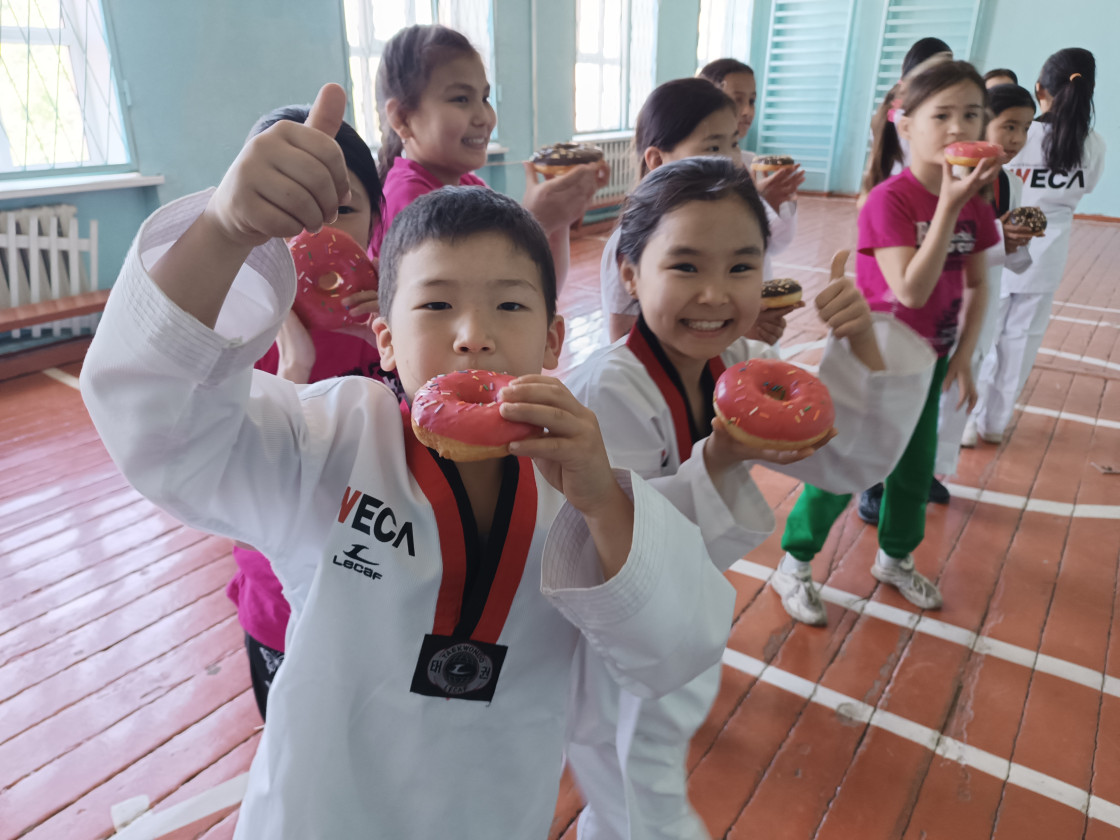태권도 교실의 아이들은 국가대표 선수를 꿈꾸며 즐겁게 연습 중입니다. 오늘은 언제나 밝고 씩씩하게 연습에 임하는 아이들을 격려하기 위해 맛있는 도넛을 준비했는데요. 간식 때문일까요? 달려들어 품에 안기는 아이들의 모습에 그만 웃음이 터져버렸습니다.