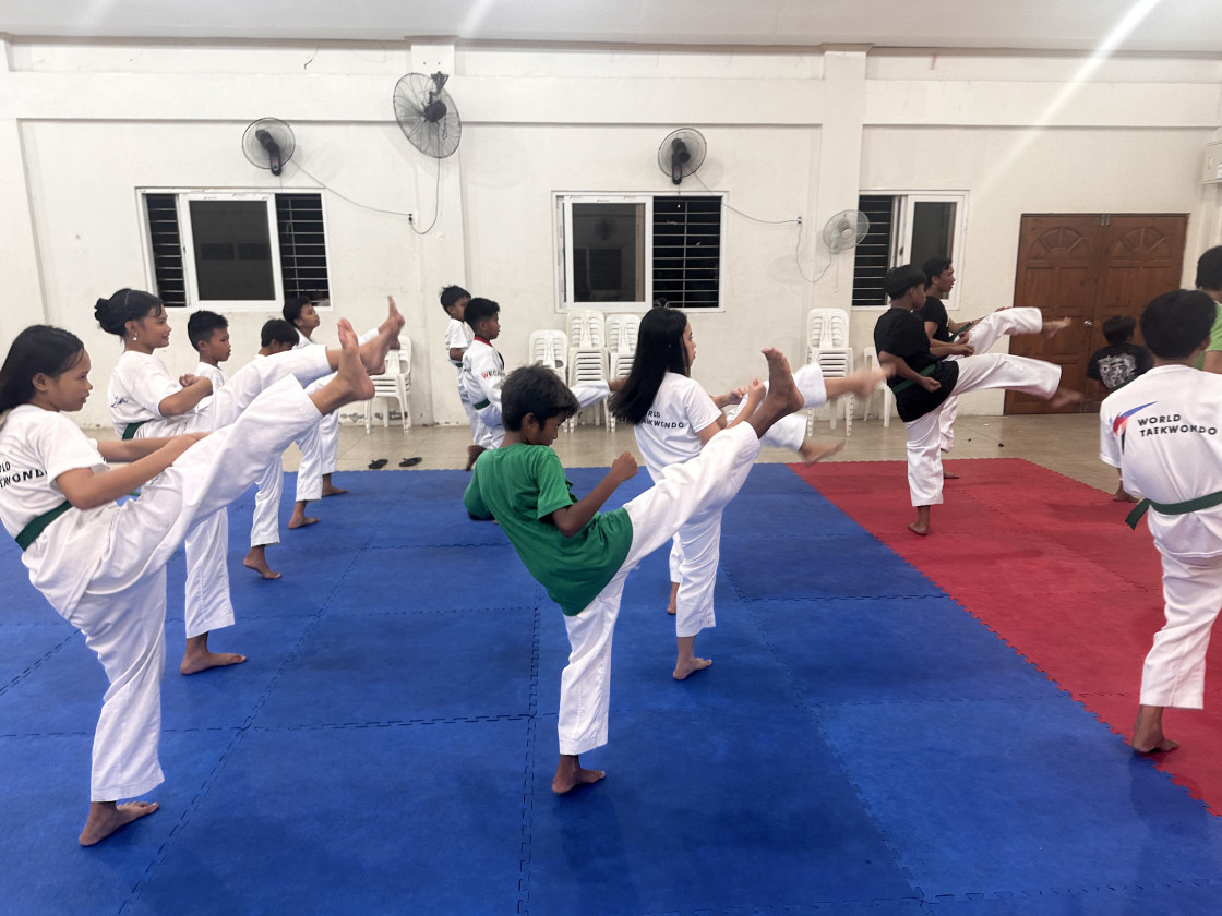필리핀 아이들에게 태권도 수업을 선물하고 있습니다.