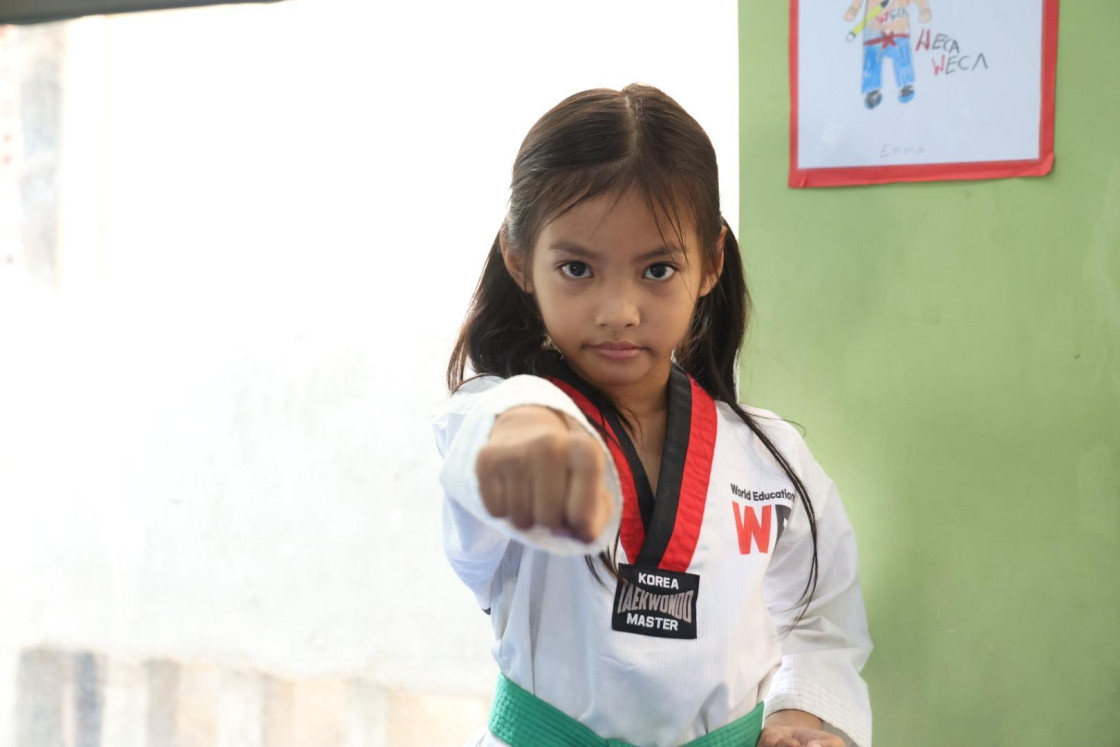 자신감이 부족했던 한 소녀가 WECA 글로리아 태권도 수업에 참여하게 되었습니다. 그 아이의 이름은 ‘쓰라이 릿’으로 미혼모 가정에서 자라며, 사람들과 눈을 마주치는 것조차 힘들어할 만큼 무척 내성적인 아이였습니다.