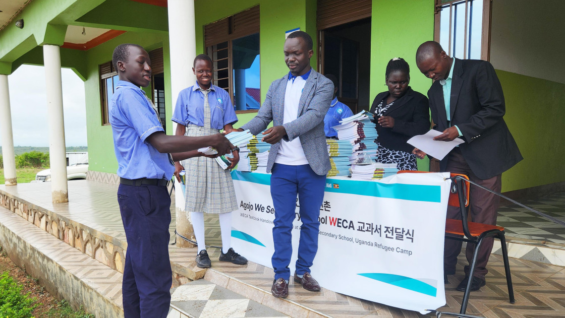 아프리카 우간다 난민촌에 위치한 어드주마니 WECA 세컨더리 스쿨 아이들에게 교과서를 전달했습니다. 깨끗한 교과서 한 권 없이 공부하던 아이들은 이제, 후원자님께서 보내주신 새 교과서로 배움을 이어갈 수 있게 되었습니다.