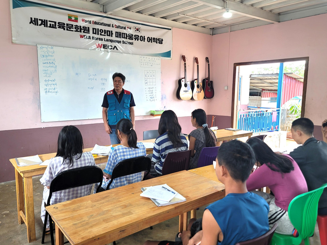 교육과 문화의 기회가 부족했던 미얀마 아이들은 세계교육문화원이 지원하는 매따웅유아 어학당에서 공부를 하고 있습니다. 아이들은 미얀마어를 비롯한 영어, 수학, 과학 등 기초 과목을 배우며, 자신의 미래를 그려나가고 있습니다. 수업 시간마다 선생님의 말씀을 놓치지 않으려 집중하는 아이들의 눈빛이 참 기특하답니다.