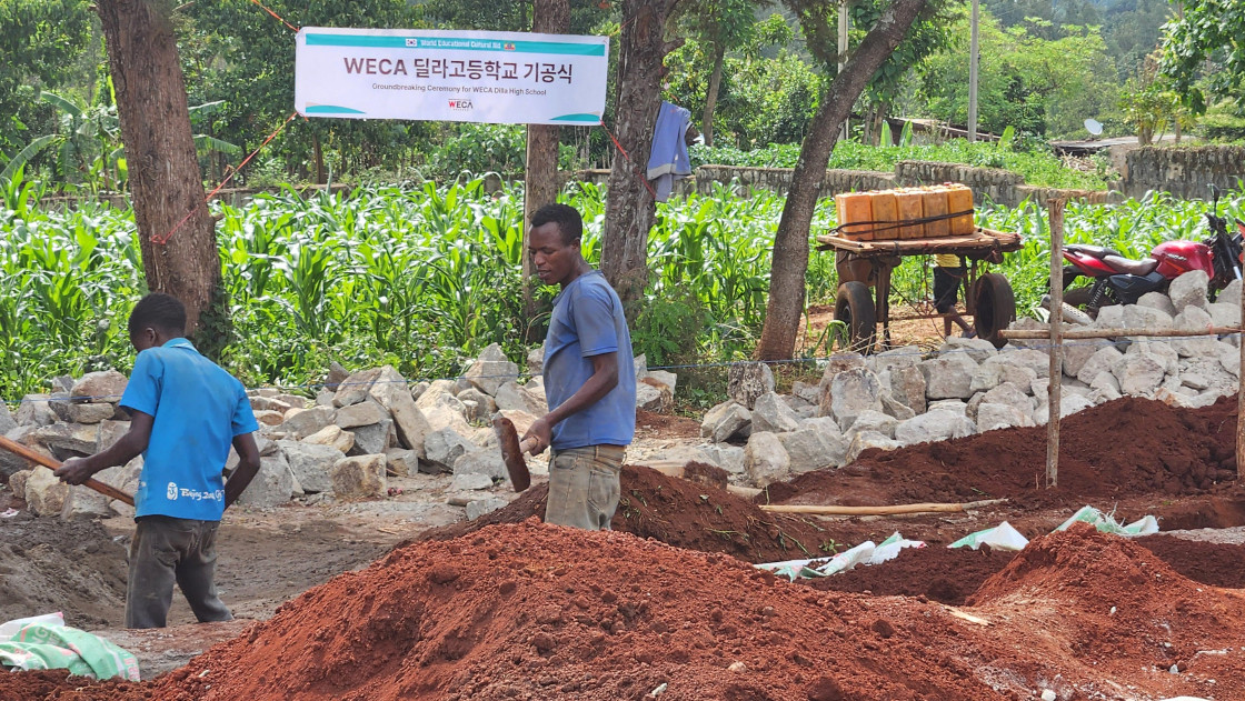 가난을 벗어날 수 있는 유일한 방법은 교육입니다. 그래서 세계교육문화원은 교육의 기회가 부족한 아이들을 위해 딜라 고등학교 증축 공사를 시작했습니다.