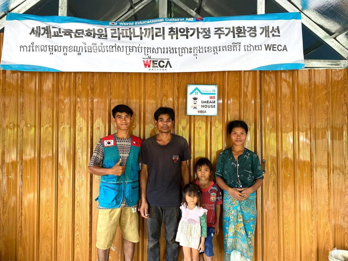 캄보디아 라따나끼리 취약가정을 위한 주거환경 개선 사업이 마무리되었습니다. 무너질 듯 위태롭던 집 대신, 이제는 비바람을 피할 수 있는 튼튼한 집에서 가족들이 하루하루를 살아가게 되었습니다.